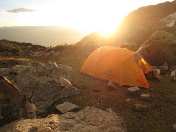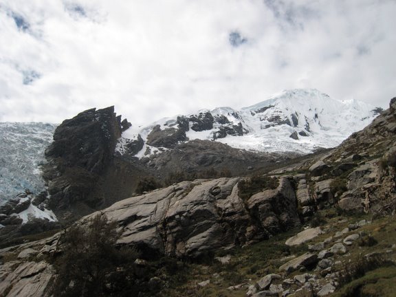 J1 : Départ de Vicos (3150m), montée au camp sous la laguna au pied du couloir d'accès au glacier/arête Ouest du Copa. Camp vers 4750m.