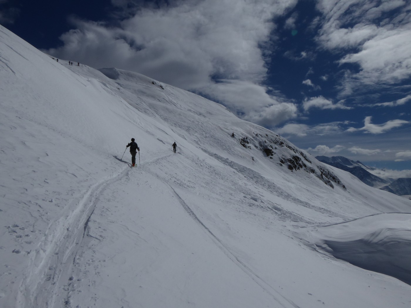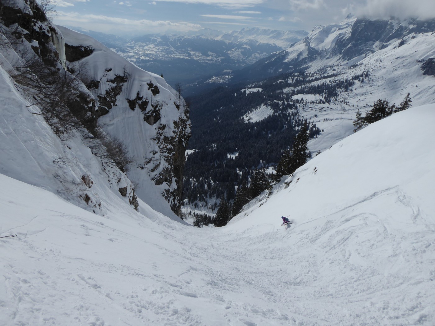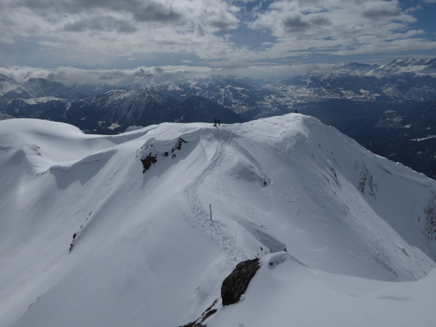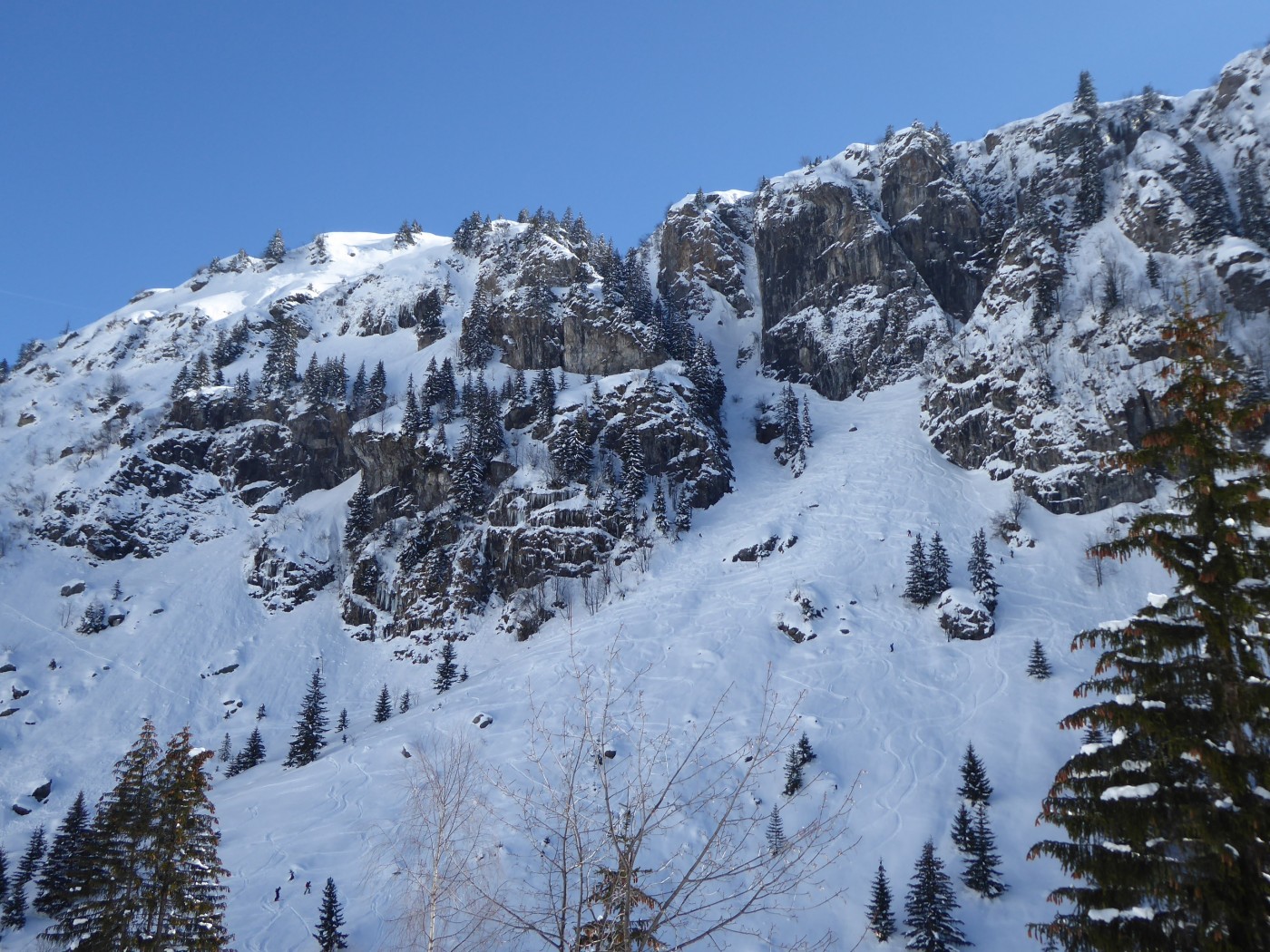 Neige en quantité mais la qualité a bien baissé sous l'action du vent. Une bonne vingtaine de skieurs aujourd'hui dans la Chorde où le ski étant encore assez bon. Compte tenu de l'humidification de la neige en journée et des températures froides, la skiabilité va bien baisser.