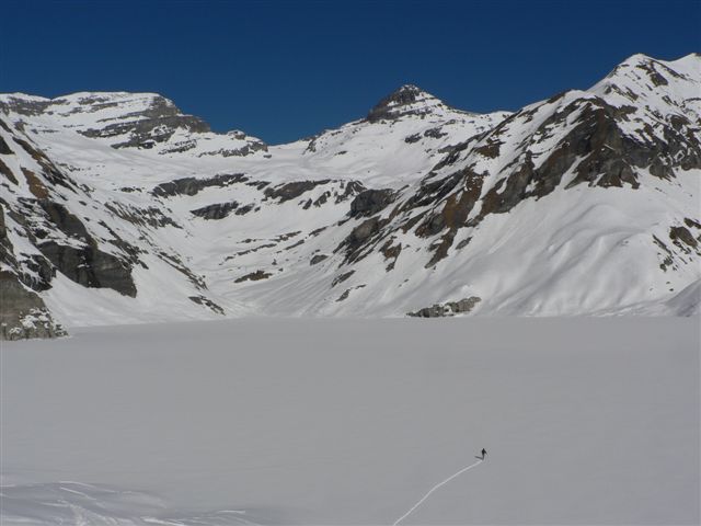 La Léchère > Fenestral > col 2553 m au nord du col de Bel Oiseau > descente sur le lac d'Emosson > montée à l'Oeil de Boeuf par le glacier de la Finive > descente SO sur le lac du vieux Emosson puis barrage d'Emosson par la rive droite > La Léchère.