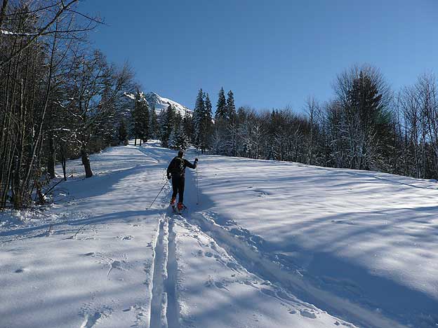 Montée en évitant pré Marcel par un système de pistes versant nord et, au retour, sous pré Marcel on a préféré la route où l'on ne touche pas.