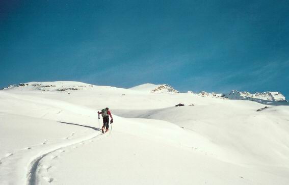 passant a droite ou a gauche de la cote rocheuse du Clapier vert. Au passage on cotoie de nombreux chalets d'alpages (nous avons allonge la partie ski de fond en partant