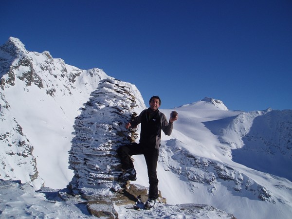 Les chutes de neige de la Saint Sylvestre ont amenées 5cm de poudreuse par ici. L'ensemble du versant a été assez venté. Quelques belles accumulations particulièrement dans le bas (avant sortir dans les alpages) où de petites plaques récentes sont parties. Ailleurs on a un peu de tout, poudre plus ou moins cartonnée ou neige dure. Quelques "woufs" de tassement dans les alpages dans des zones de faibles pentes (< 20 degrés) en traversant quelques accumulations. Contrairement à ce qu'on pourrait penser, la pyramide sommitale est plutôt en bonne neige (neige froide légèrement croutée).