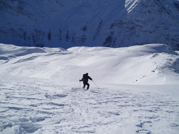 Pour le premier de l'an avec cette météo on ne pouvait pas échapper à l'Ouille Allegra. Ce n'est pas la première fois mais on ne s'en lasse pas, panorama splendide, solitude assurée. Du ski qui a déjà été meilleur ici mais aujourd'hui si c'était un peu physique, ce n'était pas si mauvais que ça malgré le vent qui a bien fait son œuvre (suffit de bien choisir ces trajectoires et on a quelques belles surprises).