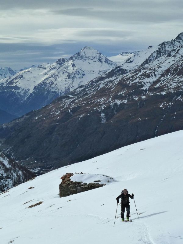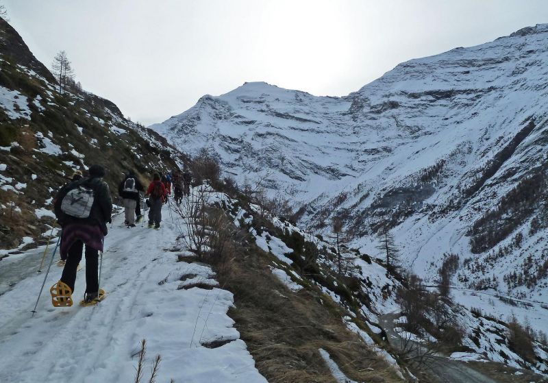 Déchaussage (montée et descente) sur la piste entre 1900 et 1950. Quelques passages peu enneigés entre 2400 et 2500 m.