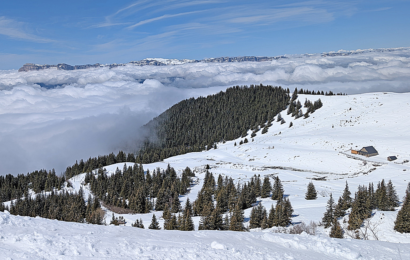 Au-dessus de 1800 hors pistes pour éviter les grosses traces des dameuses (station fermée…)