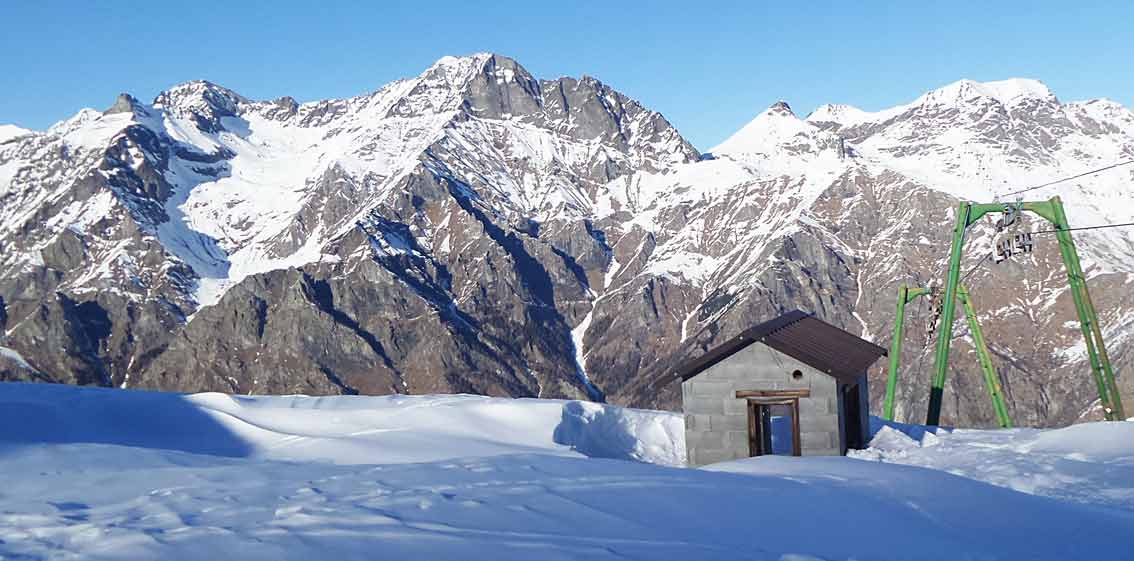 pour la neige c'est ici que cela se passe. la dernière chute de l'est (20/12) a été très importante, probablement le secteur le plus arrosé. On trouve la neige continue en nord à 700 m au-dessus de Viu (20 cm). Ski de fond bien fourni à Usseglio. Alpin en bonne condition à Pian Benot.