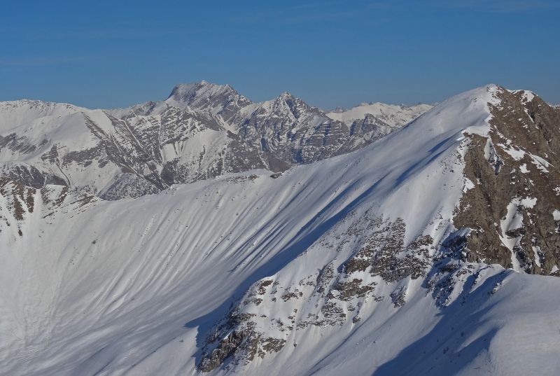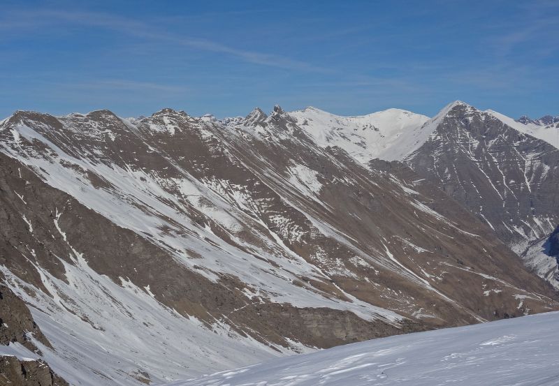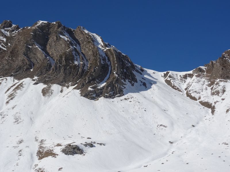 Bel après-midi dans des lieux connus, même si je n'avais jamais skié les Parias. L'enneigement est très faible en versants sud, mais moins pire que le 11/02/2005 où nous avions avec Manu intégralement monté le versant sud du Piolit à pieds secs (avant de descendre en nord).