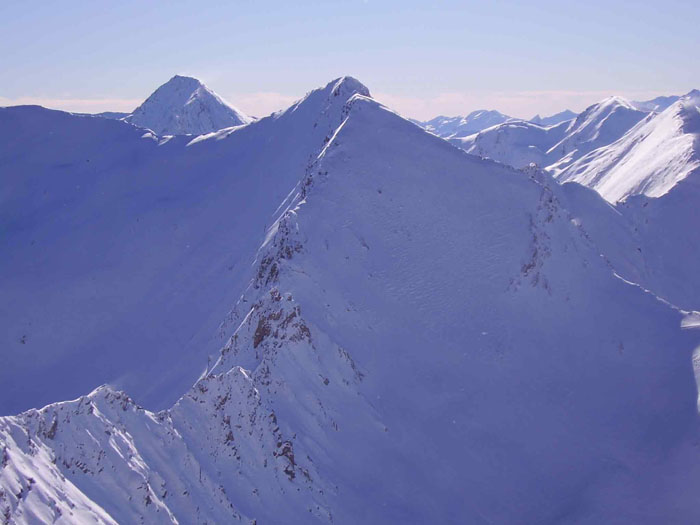 Chemin de la cabane de la Sèche, pentes NE au-dessus, cabane des Issalps et vallon plein sud le long du torrent à l'est des Posterles. Vers 2400, à gauche dans des pentes soutenues, replat vers 2450 puis à droite vers un collu vers 2620 dans des pentes à surveiller du coin de l'œil. Ensuite, à gauche NNE jusqu'au sommet 2919. Au retour, j'ai préféré suivre la route après la cabane 2087, car il y avait trop de cailloux dans les pentes NE (pas trop en haut, mais beaucoup en bas). La route est très skiante : en 10 mn, on est en bas !