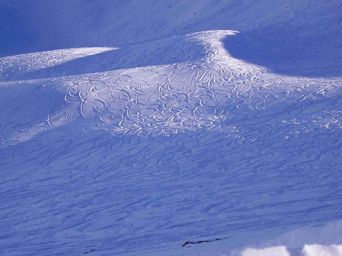 Très belle sortie ! Je ne m'attendais pas à si bon. En cherchant bien, on arrive à trouver de la poudreuse tout le long ou presque. Je n'ai pas eu le temps de remonter à la Grande Combe, qui a été tracée, mais je ne suis pas sûr que la neige y soit restée très bonne. Par contre, elle semble bien recouvrir les cailloux, ce qui n'est pas si fréquent (merci au vent du sud). Pas touché un cailloux à la descente. Deux traces de descente à la Ratelle E, et pour le Crachet NE, je ne vous dis pas, elles sont impossibles à dénombrer !