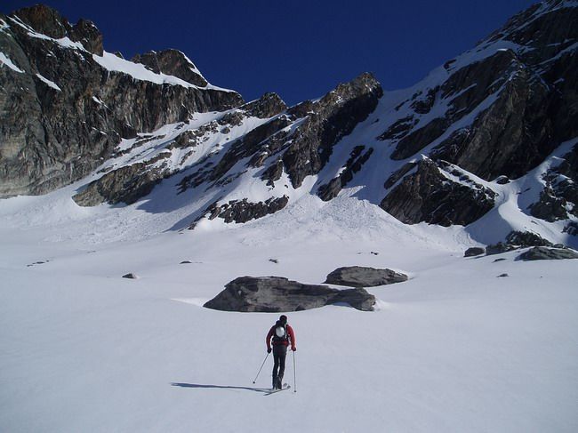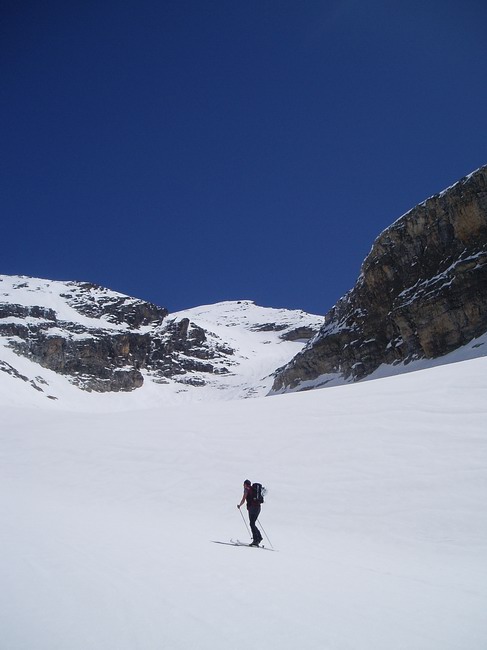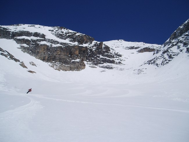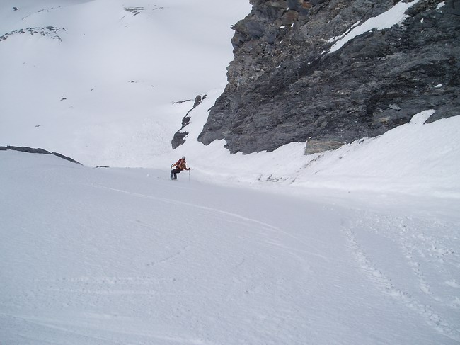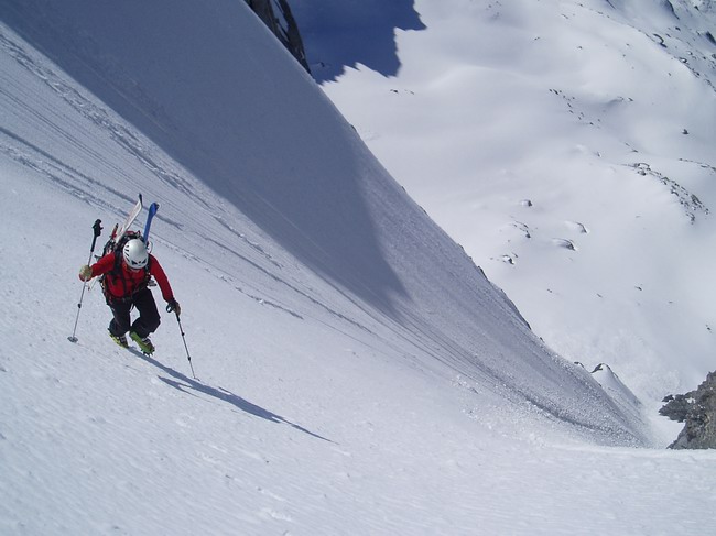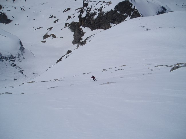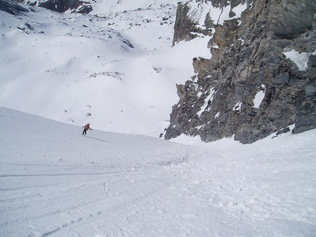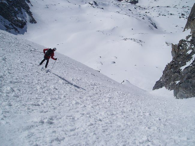 Couloir sud de la pointe est de la Partie, descente jusque vers 2600 . Remontée à la pointe ouest de la Partie par l'arête ouest puis descente directe du sommet.