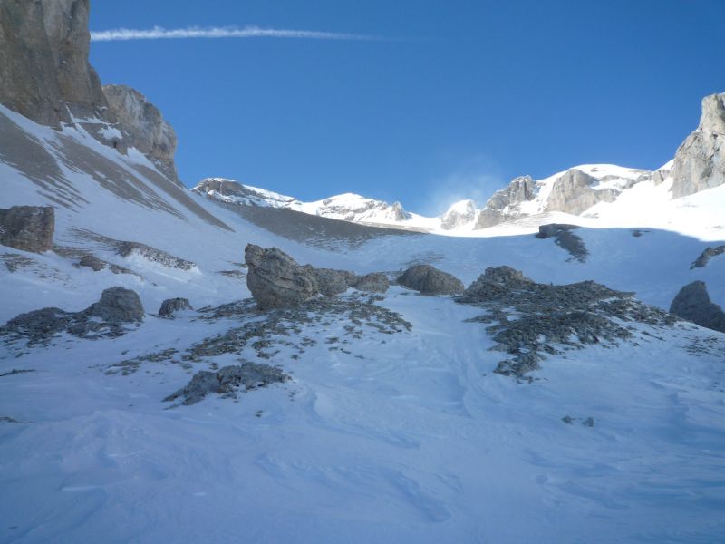 Parti sans conviction pour le Grand Ferrand par les Chouroums,j'ai déchanté dés le bas du Chouroum Olympique.Trop de vent;neige béton(ambiance plus qu'austère):moral dans les chaussetttes.Je me suis rabattu sur le Pas de la Cloche juste à côté.