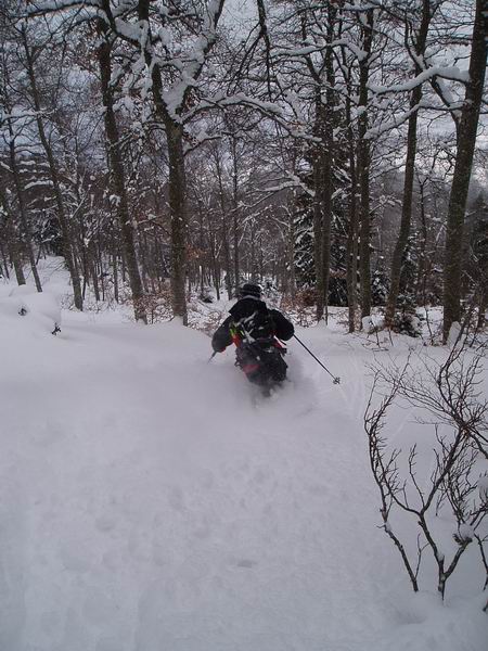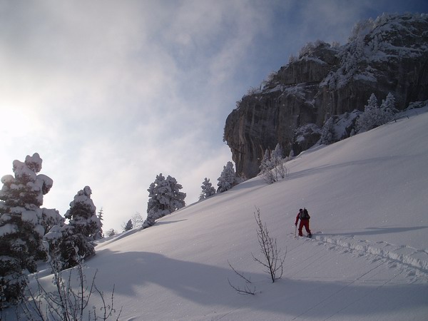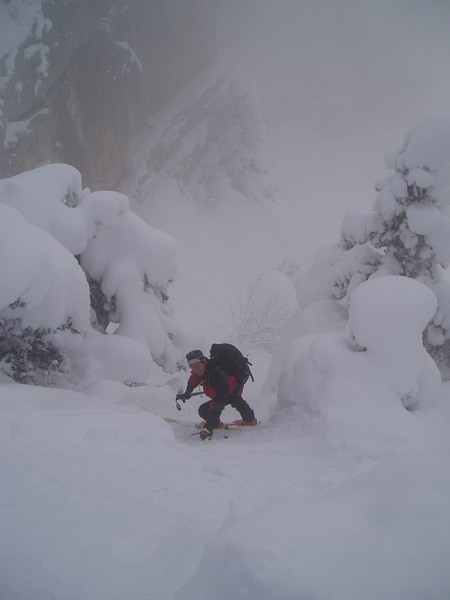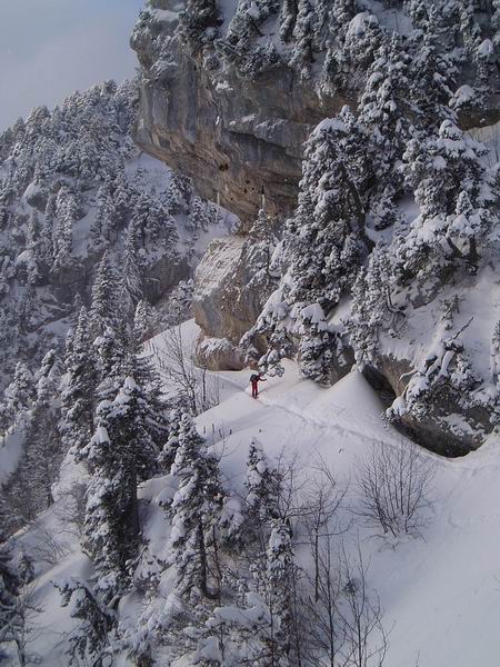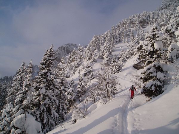 L?accès au Col de l?alpe sous la neige et le soleil est vraiment magnifique et mérite à lui seul le déplacement. Dans les conditions de ce jour, après les 20 premiers mètres, le couloir n?est plus très raide, alternance de grosse poudreuse et de rigoles d?écoulement un peu moins remplies. La forêt sous le couloir est sympa avec cette quantité de neige. A la première journée vraiment ensoleillée ça va purger et se goulotter rapidement.