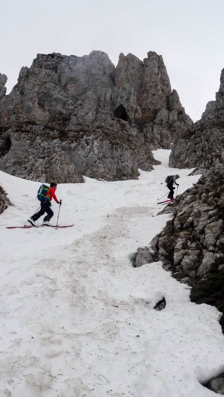 départ 100 m avant le parking d'été de la route forestière - montée par le sentier de la cabane des Claux avec un peu de portage, redescente directe dans l'axe du couloir, déchaussage quasi à la voiture avec quelques manips.