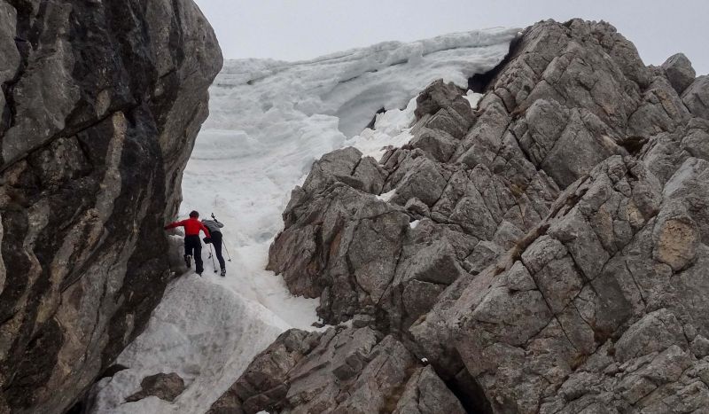 Sortie ludique au Pas de l'Oeille en coutournant la corniche à droite par de l'escalade facile.