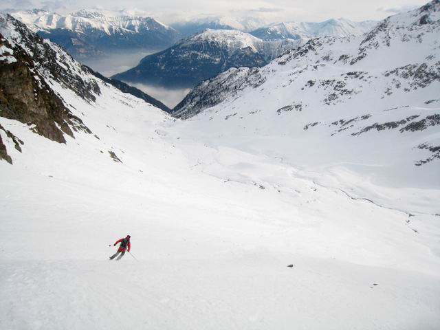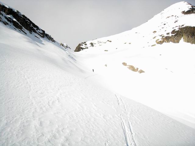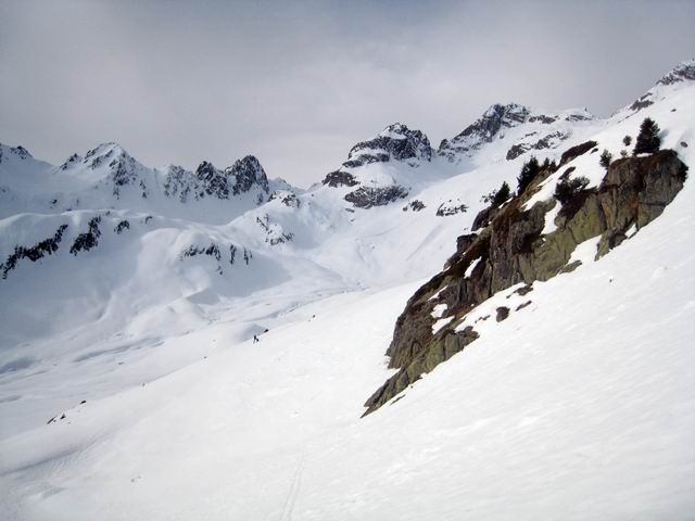 le moins mauvais en en orientation sud, avec une croute dure recouverte le plus souvent de qq cms de poudre à peine réchauffée. En versand froid, la croute glacée est omniprésente dès que la pente s'accentue un peu. Pénible en peaux (ça m'a valu une zippette de 50m = une joue en steack haché), encore plus à pied, et pas rassurant du tout à ski