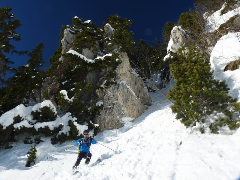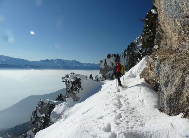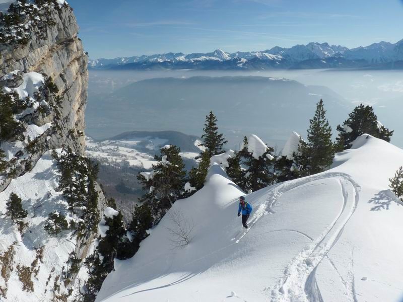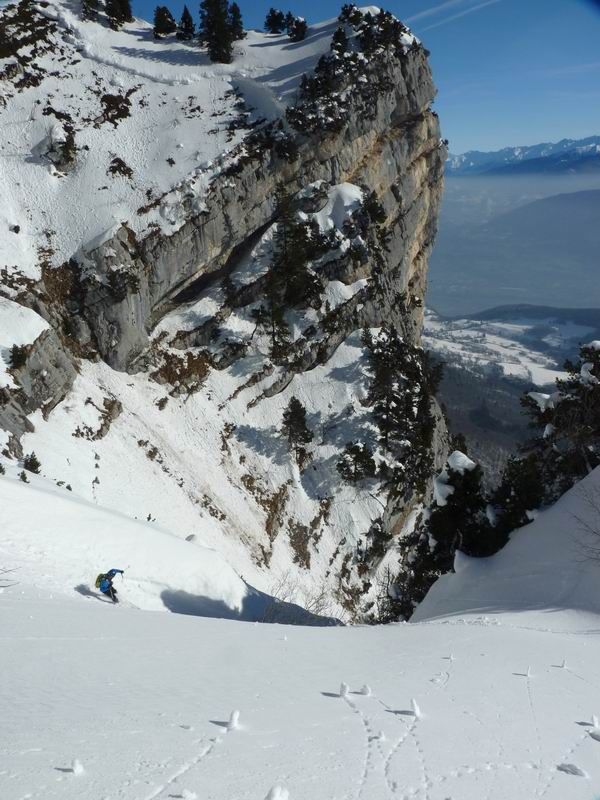 Entre la transhumance de février et les conditions moyennes en altitude, c'était l'occasion de visiter ce passage du Fourneau, typique de ce qu'on chercher dans la barriere est de Chartreuse. C'est pas raide mais c'est tordu, et de coup de cul en traversée on se retrouve au milieu de nulle part avec le grésivaudan sous les spatules. Dommage pour le haut, un fouinage approfondi s'imposerait pour s'assurer qu'il ait ou pas une sortie plus élégante.