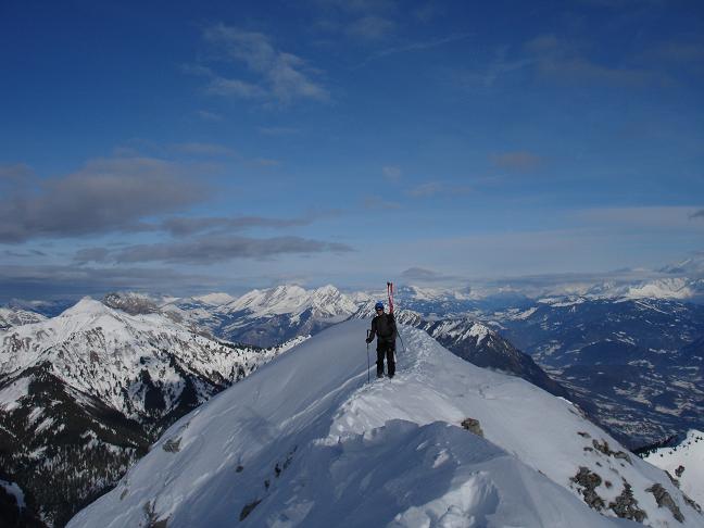 Plusieurs skieurs ont fait l'Armenaz, en se tenant proche de l'arête pour éviter les zones propices aux glissements.
