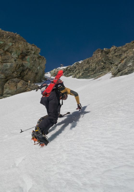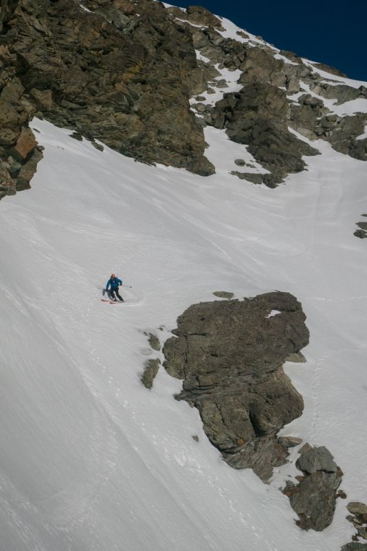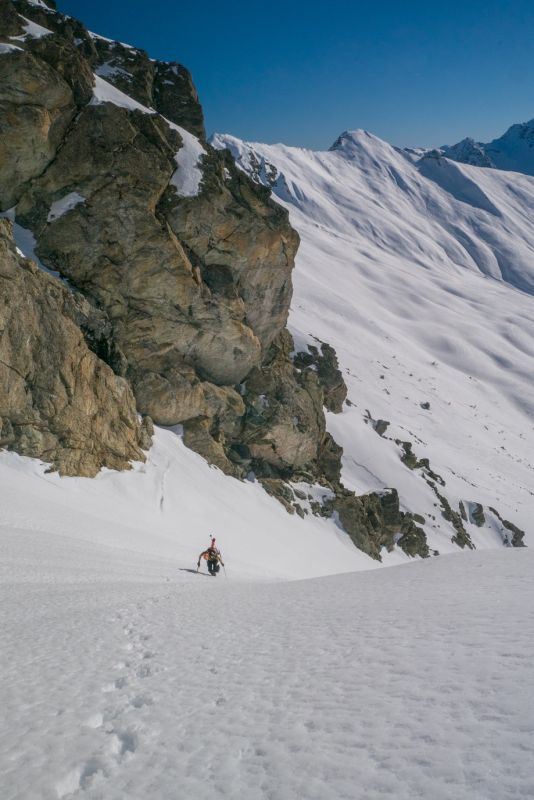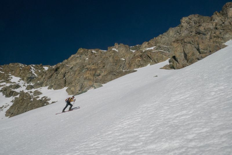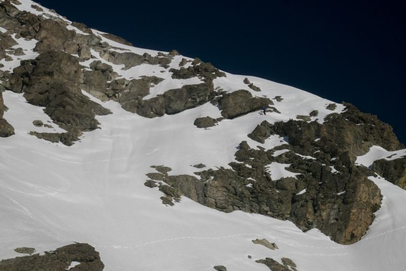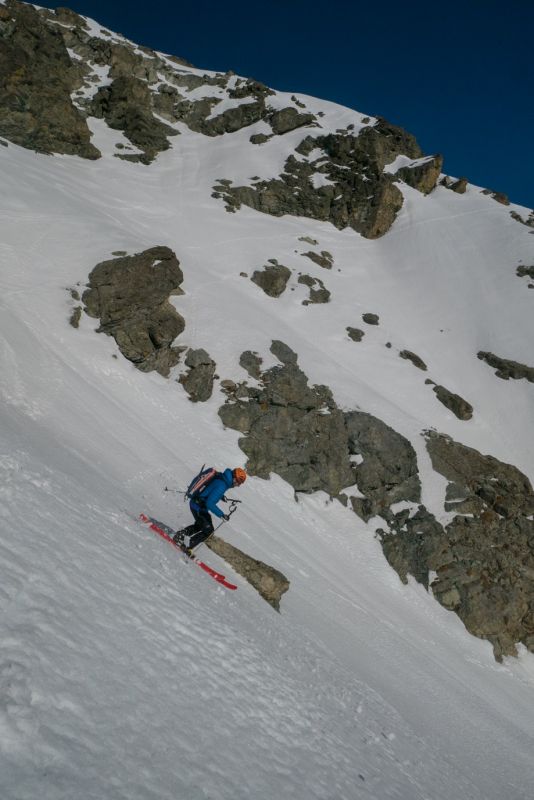 Face en excellentes conditions : c'est vraiment un bel itinéraire. Très bon ski sur le reste de la descente moyennant 200 m en bas où il faut faire avec l'enneigement limite sur cet adret.