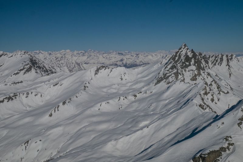 Enneigement excédentaire pour le secteur au-dessus de 2100-2200 ; déficitaire en-dessous de 2000 m. Ca skie limite en fonds de vallée. La qualité de la neige s'est dégradée en versants nord avec des neiges variées mais il reste cependant de bonnes zones de poudre tassée en ouest ou est avec aussi de belles cassures observées dans les moindres talus orientés ouest. Les meilleurs plans semblent les faces sud raides qui prennent le soleil perpendiculairement depuis plusieurs jours.