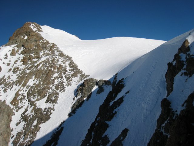 Après avoir contacté Louis Grenet , ses retours étaient bourrés de superlatif! Du coup une demi journée de libre , un créneau météo , et je tente ma chance. Ça passe encore , mais la face a bien chauffé, glace et rocher sont parfois bien présent: Pour le bricolage : Un tout droit en peu expo... et une désescalade sur le bas (le tout droit m'ayant bien refroidi!).En tout cas un bien bel itinéraire! Et un sommet que je visite pour la première fois!