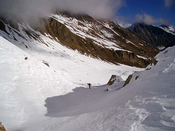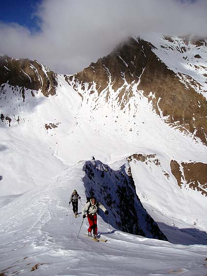 mis à part quelques portions en neige très dure (soufflée + pluie) ou transfo non dégelée(en passages chauds) une des pires descentes de ma "vie" de skieur hors pistes dammées, une croûte infâme non dégelée en surface et pourrie en-dessous.