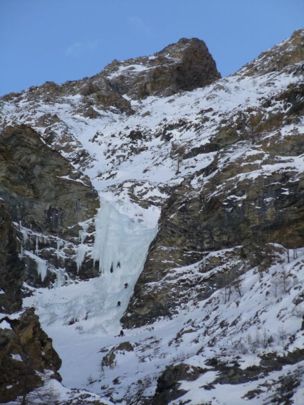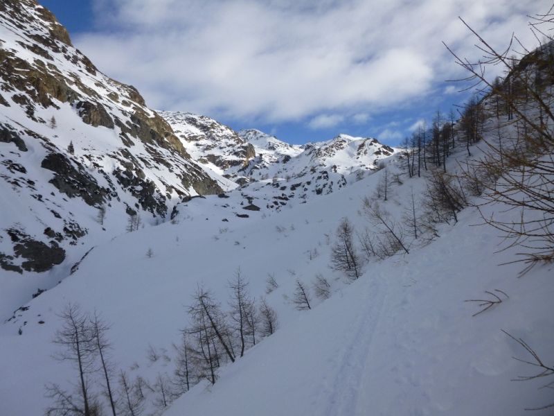 Le sentier pour monter à Grauson Dessous est en bonnes conditions et bien tracé. Merci à ceux qui m'ont précédé. Ceci étant, une fois de plus, je n'ai vu personne de la journée si ce n'est, de loin, 6 grimpeurs en cascade. Une vieille trace vers la Tersiva et quelques traces vers Grauson Dessus.