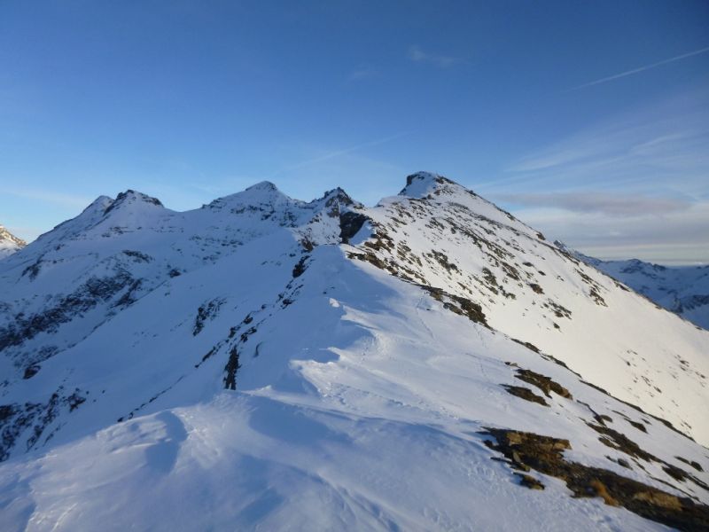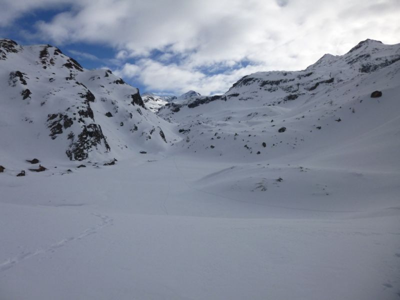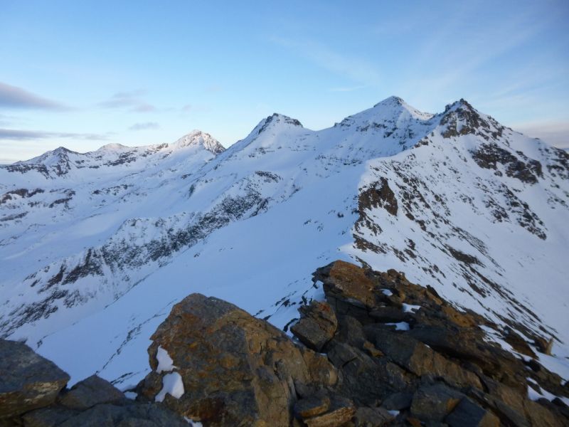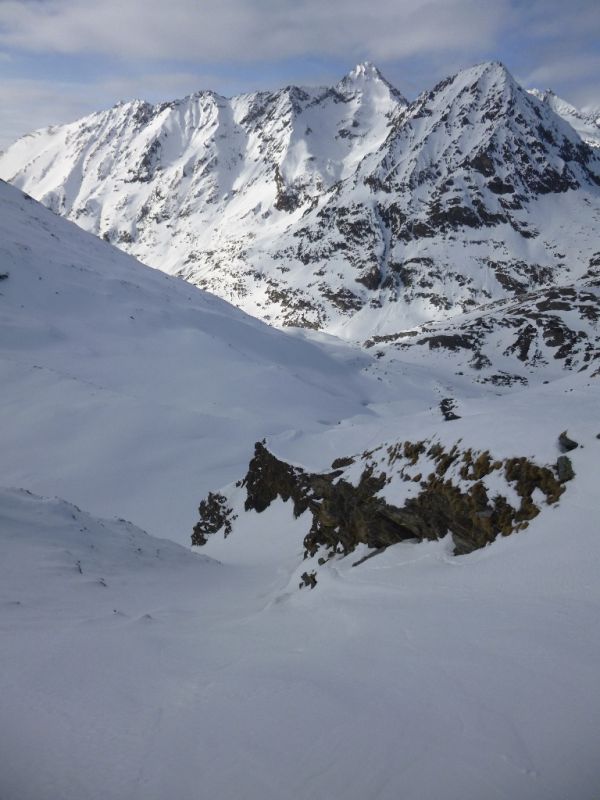 Au-dessus de 2300m, 5 à 10 cm de poudreuse sans cohésion sur un fond parfois très dur. Quelques petites plaques en surface par endroits. Les quelques cm qui sont tombés ne suffisent par à recouvrir les cailloux près des crêtes érodées par les tempêtes de décembre et janvier.