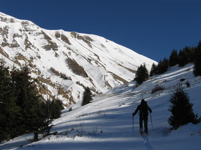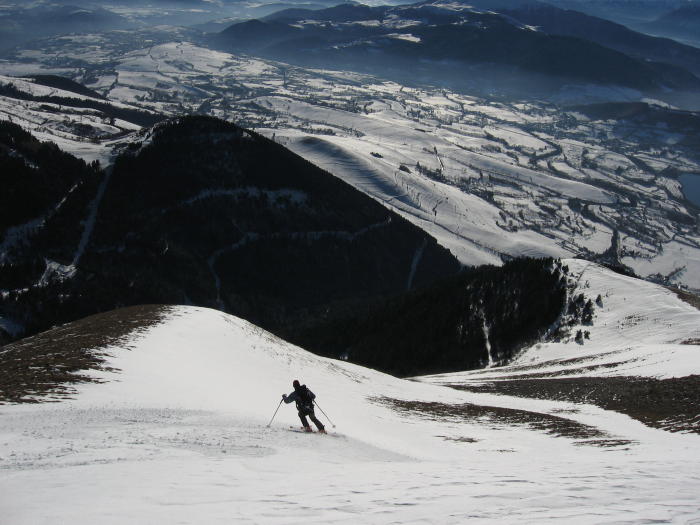 Bonne surprise: les chutes ont été à peine moins conséquentes que + au nord (5-10cm de - qu'en chartreuse et belledonne à 1500m). Le vent ayant compacté fortement la neige, on ne touche pas même si par endroit la couche est faible. Les faces N sont pelées mais en revanche c'est au profit des versants S: descente du pérollier sans toucher, en grandes courbes dans une poudre compacte (neige frittée) en cours de réchauffement, similaire à de la transfo de printemps. Dans la SO meme type de neige mais plus réchauffée voire carrément transformée dans le ruisseau. Barder cross dans la forêt qui passe très bien sans toucher jusqu'à la voiture. Bref, pas de grosse peuf mais du bon ski.