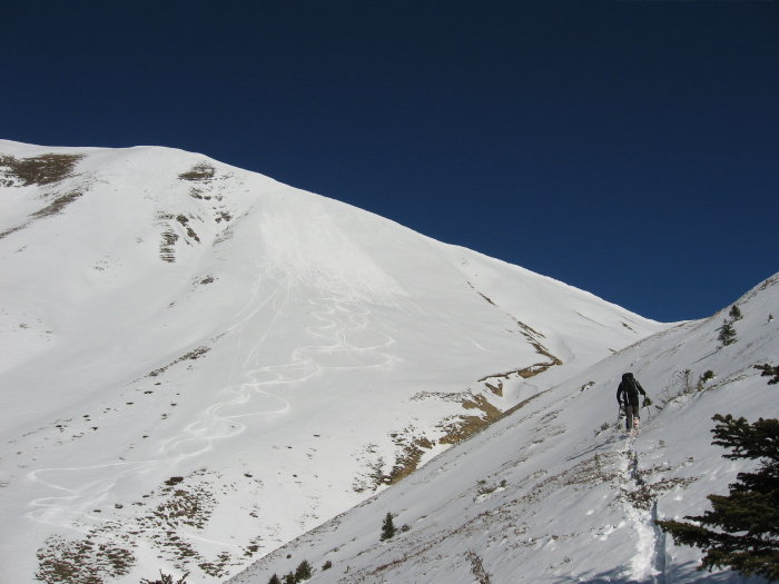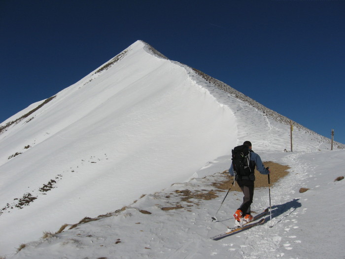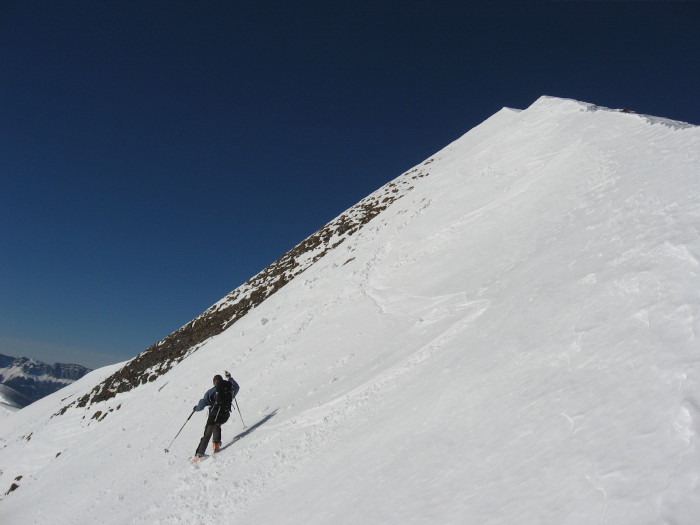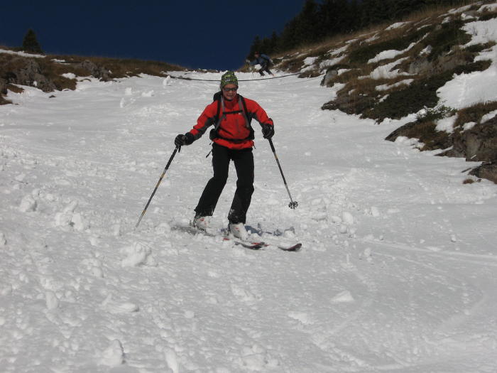 Une bien belle journée avec une qualité de ski inespérée: le redoux de la journée a bien fait son effet en versants ensoleillés permettant du bon ski quoique physique par moment. Quelques traces par ci par là mais nous n'avons croisé personne excepté deux personnes en raquettes. Coté enneigement, plus au Sud c'est vraiment pelé: tabor tout soufflé, grisonnière et coiro de même.