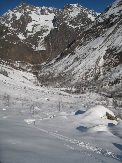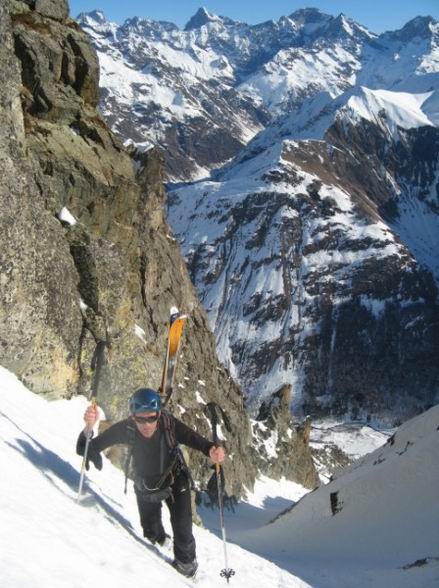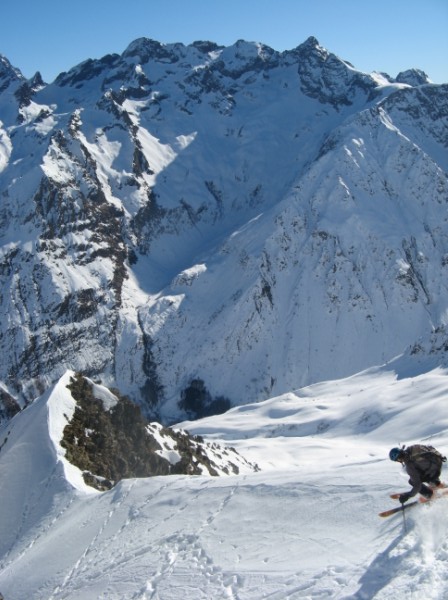 Un coin sauvage, une neige parfaite, 1300m de pente régulière, le tout dans une ambiance sympathique, bref les Ecrins, y'a que ça de vrai ...