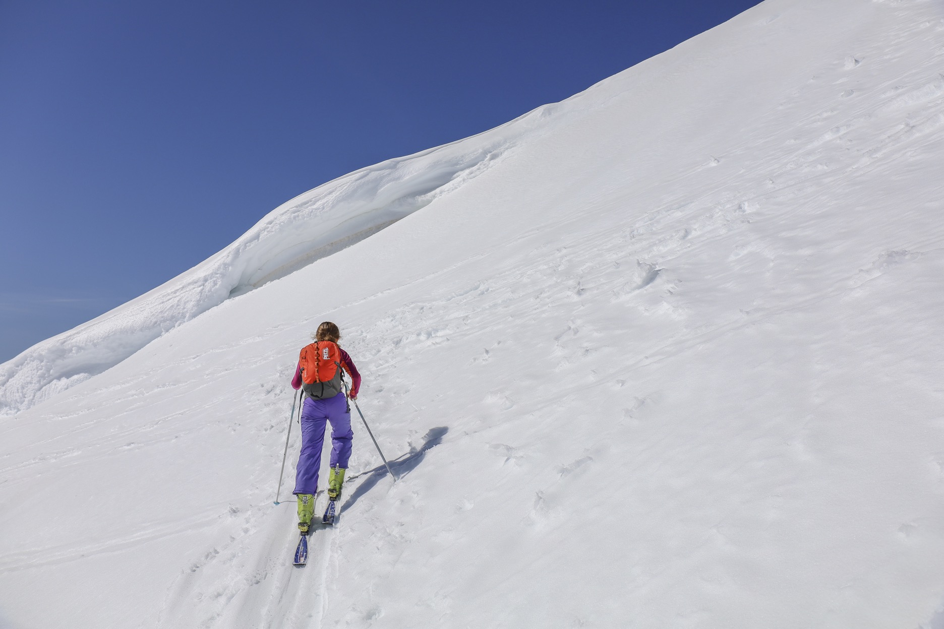 Le départ va tenir encore la semaine moyennant quelques très courts déchaussages. Une fois dans la combe (i.e. très rapidement), y'en a encore pour un moment. Descente optimale ce jour entre 12h et 12h30.