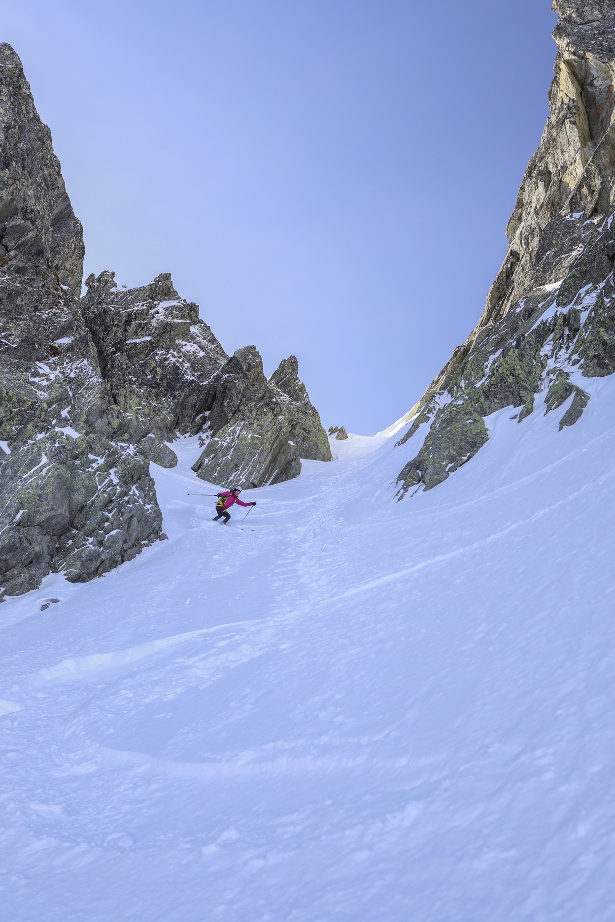 Très bonnes conditions sur l'ensemble de l'itinéraire, assez fréquenté ce jour (10 personnes dernière nous). 10 premiers mètres du couloir en neige très dure cause vieux dérapages accumulés depuis le début de saison.