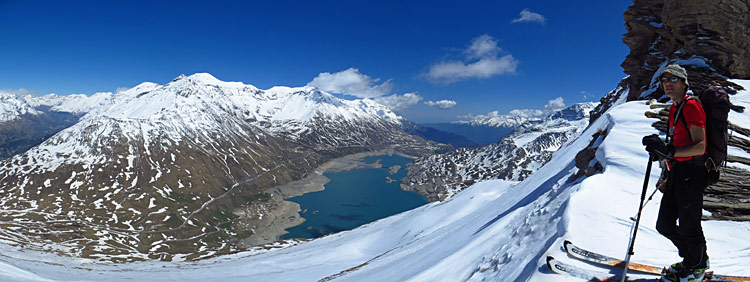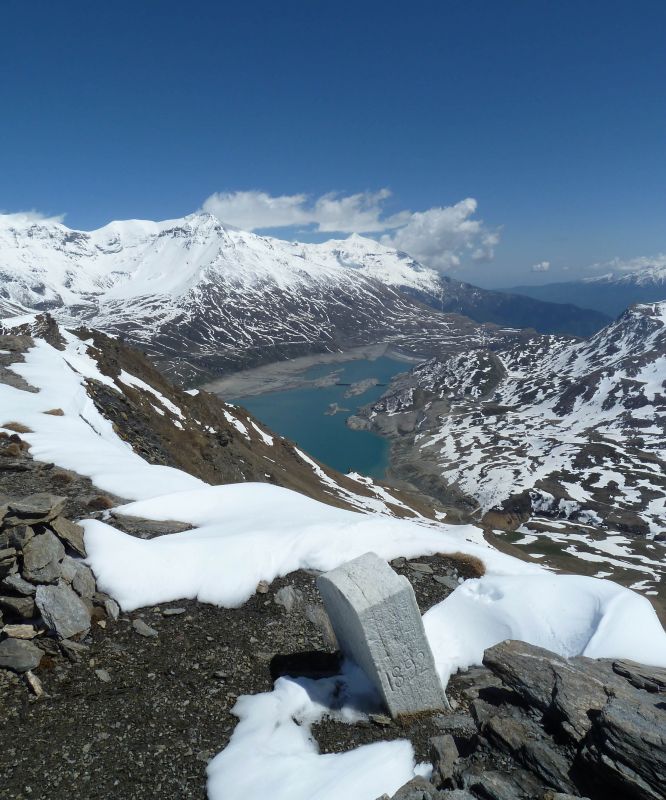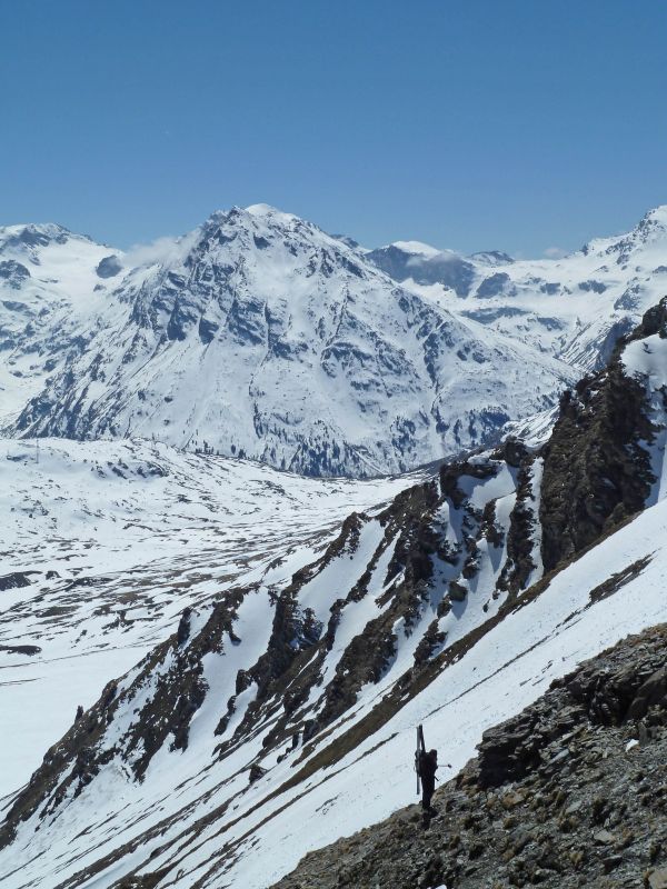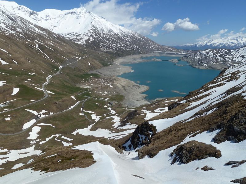 Du pont 1994 : route du Petit Mont-Cenis >> le grand Plan >> montée couloir de gauche E1.1>> descente celui de droite E1 >> montée au pas de la Beccia>> épaule au N du Laro (2794) >> retour NE (D18.3) >> pont 1994