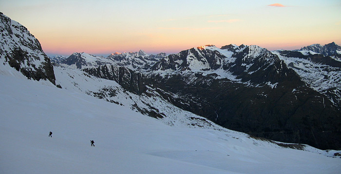 Repérée avec Clément lors du récent [tour du Paradis->http://www.volopress.net/volo/sortie3431.html] (le grand !), la face nord-est du Petit Paradis nous avait laissé songeurs... Au même titre que le versant W du col de Montandayné. Ce tour permet de skier les deux, dans le bon sens horaire, et à vue.