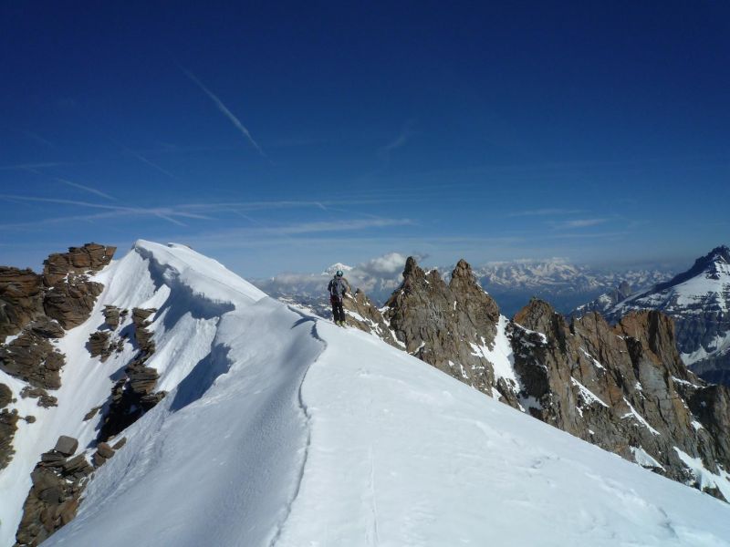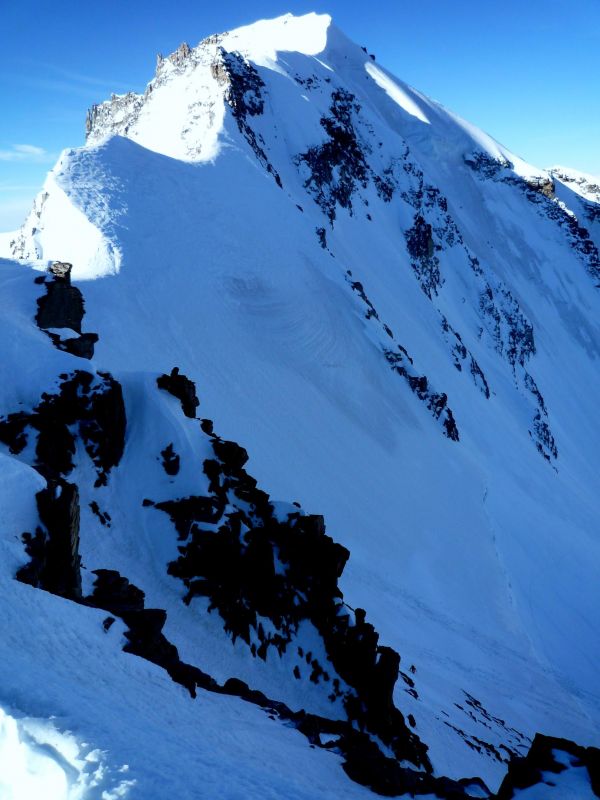 Nous avons trouvé un peu de neige fraiche seulement dans la face nord-est. Vigilance pour le début de descente car la neige était fuyante à cause du fond dur.