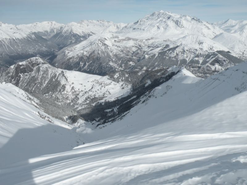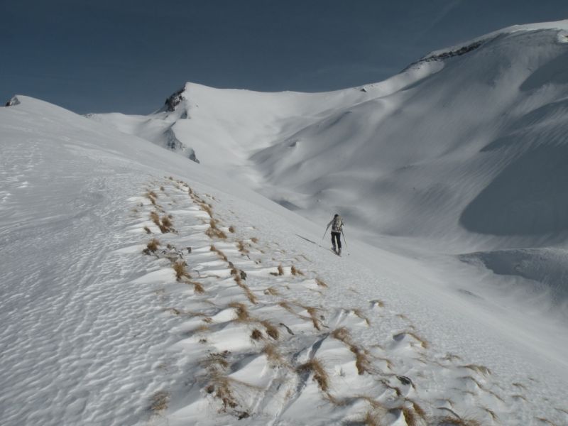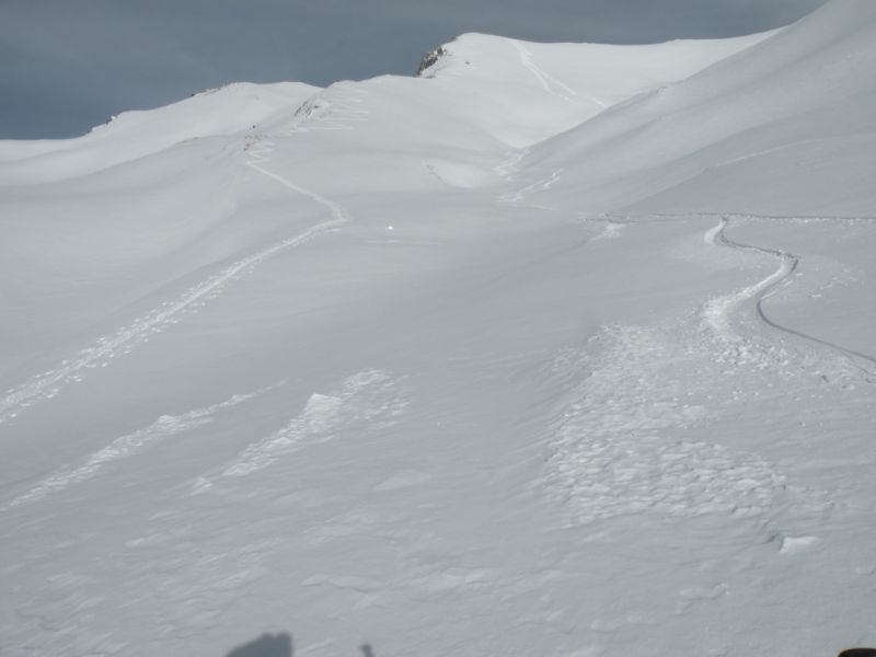Peut de neige tombée dans le secteur. Il faut se méfier dans la traversée entre la cabane de la montagne et la cabane de la combe. Neige extra au dessus de la cabane de la combe, génial.