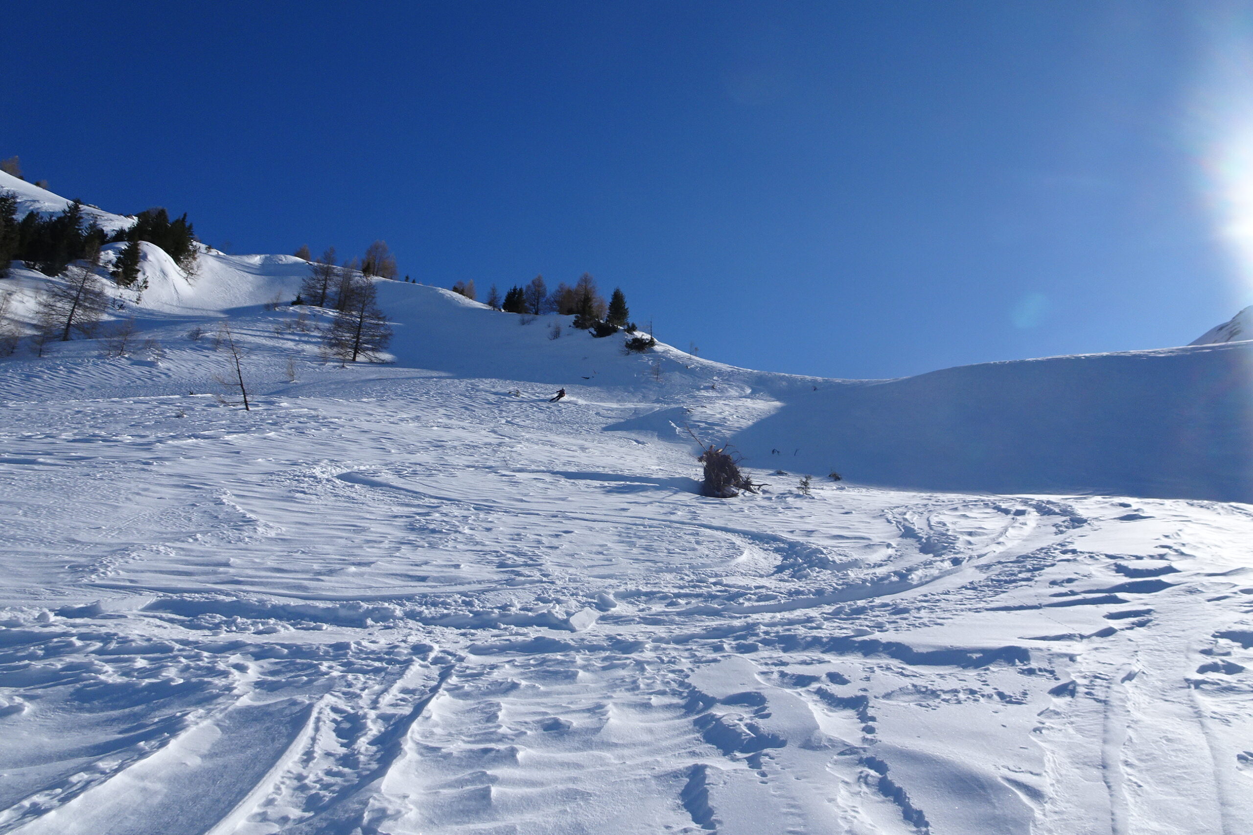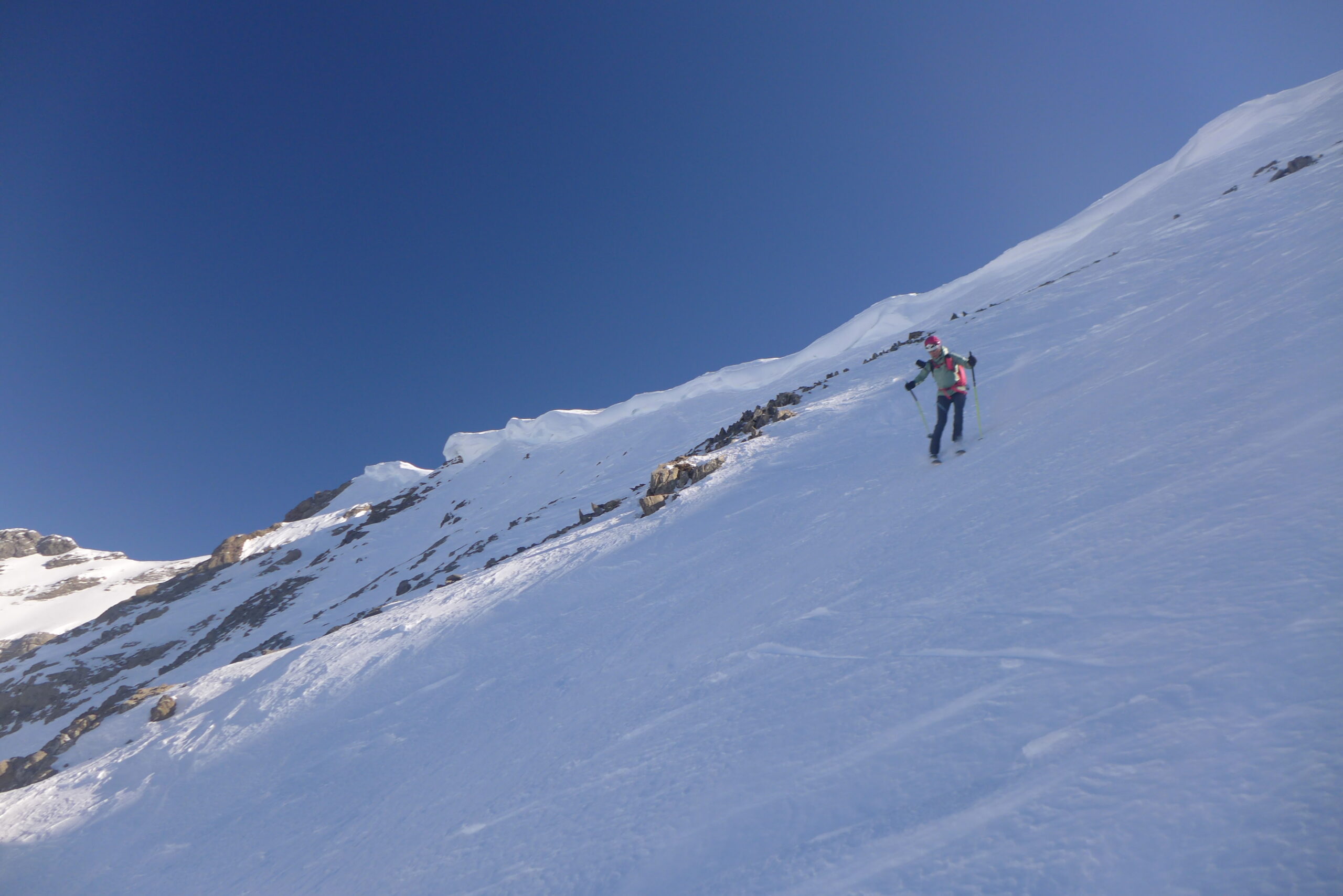 Grande balade dans ce coin peu fréquenté ce jour. Seuls en versant nord. Croisés en sud un groupe venant de Chantelouve (ils ont porté les skis en sud déneigé sur 300m de D+).