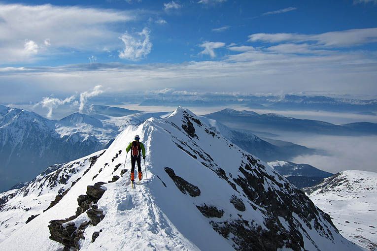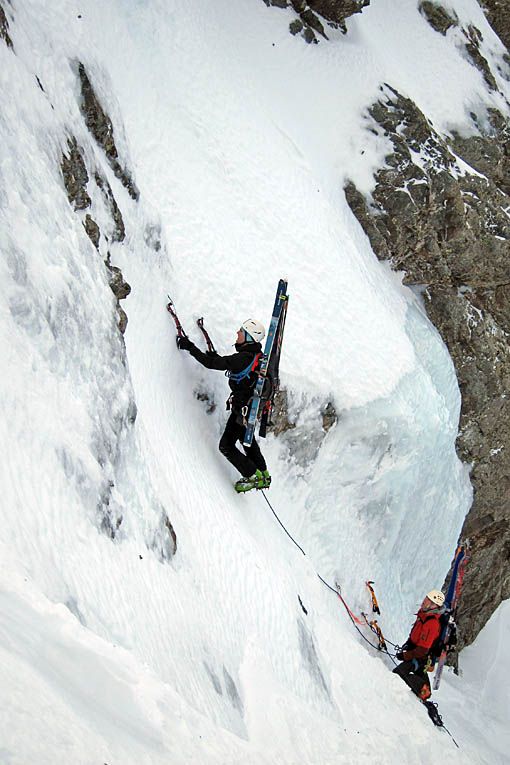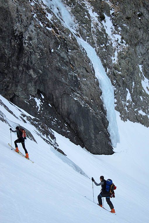 Une approche bien dammée assez rapide, une ascension alpine avec du caractère mais pas trop dure pour se faire plaisir, quelques virages un peu raides en bonne neige dure et du très bon ski sur la classique de Brouffier de haut en bas après avoir récupéré un soleil inespéré, retour largement à l'heure pour la finale du hand et victoire française. Y'a pire comme dimanche ! [D'autres impressions ici->http://lta38.over-blog.com/article-alpinisme-hivernal-en-taillefer-66119356.html]