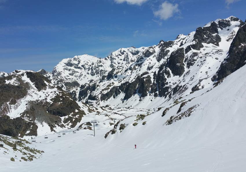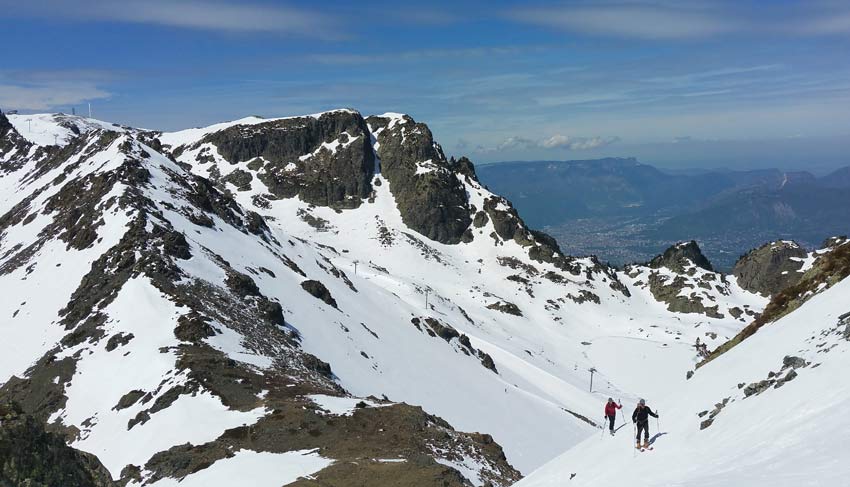 un petit centimètre dans la nuit pour adoucir les montées. bon regel, dégel lent. neige encore ferme à 13h00. Sous 1900 bonne glisse dans les traces (névé) un peu collante sur la neige du 28.