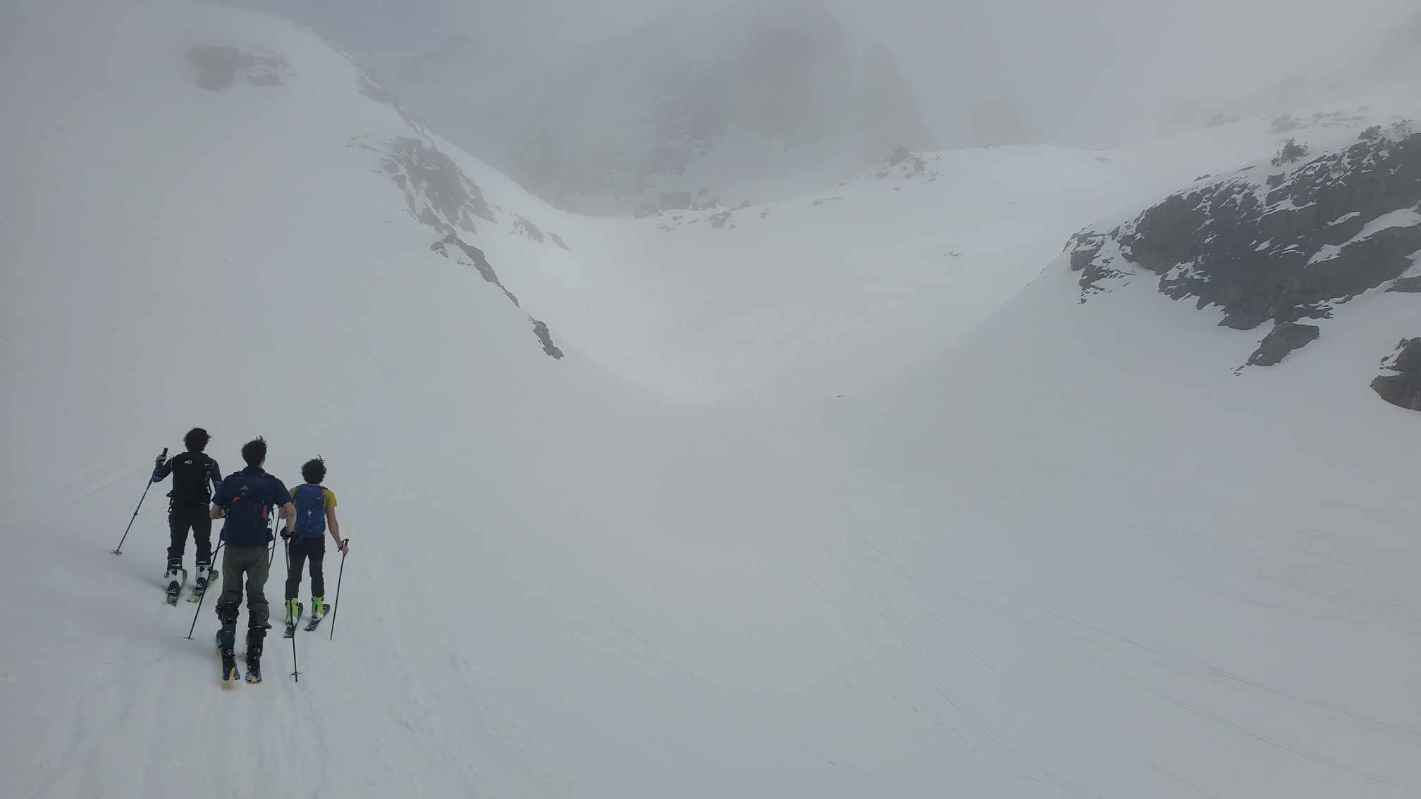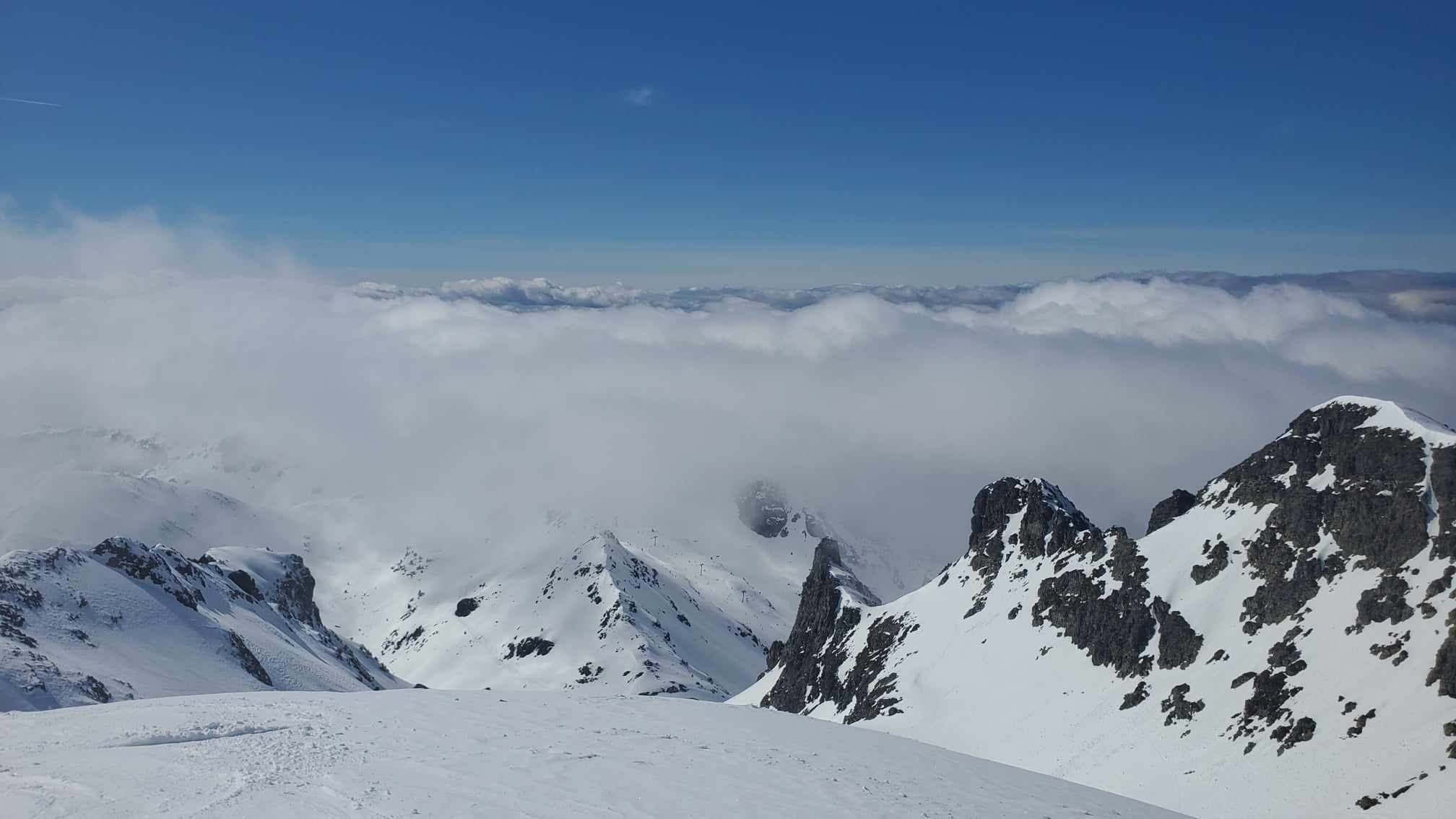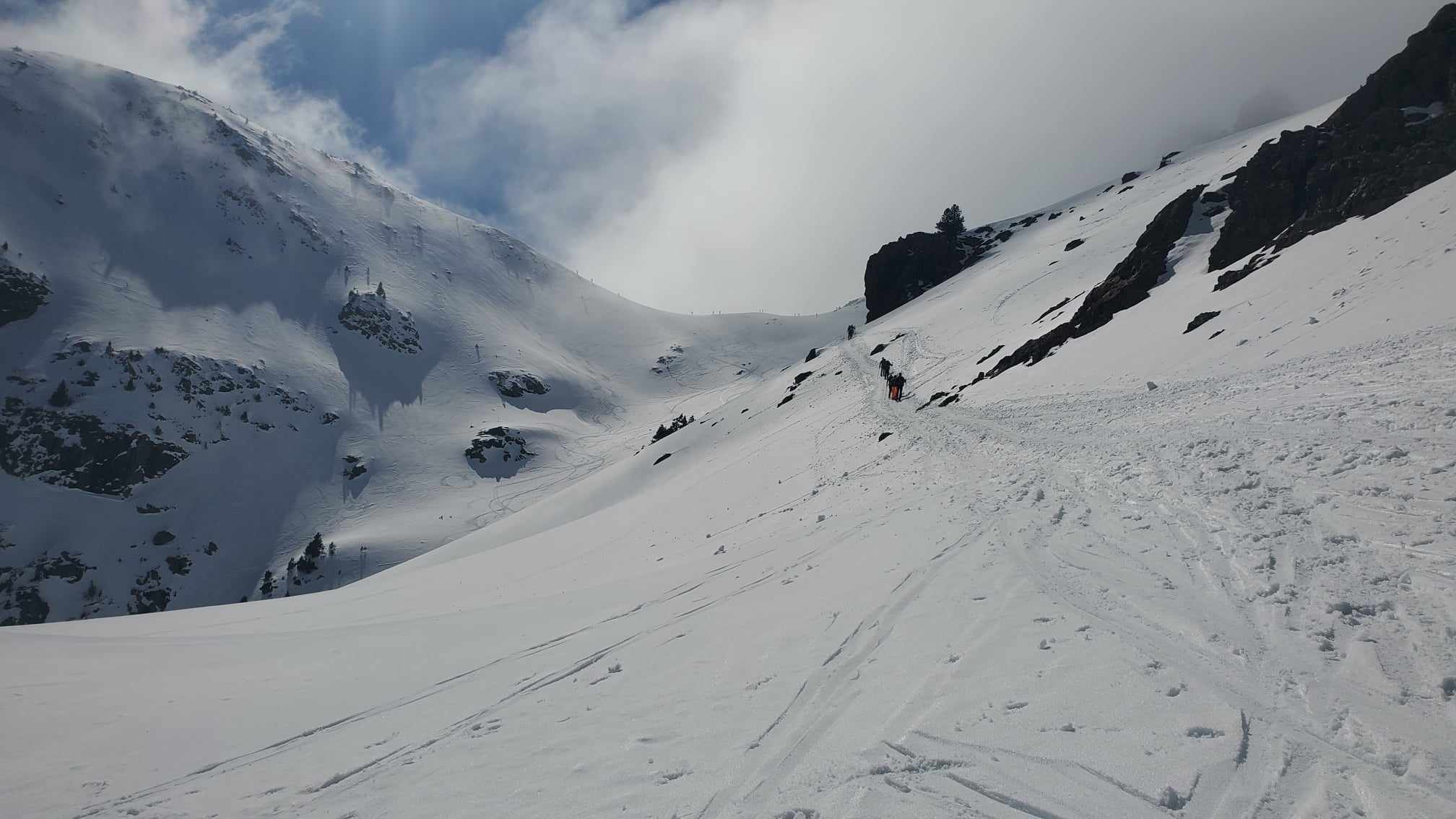 Neige de printemps agréable, faible enneigement sur tout l'itinéraire. Dans la forêt, l'enneigement continu est à 1900.