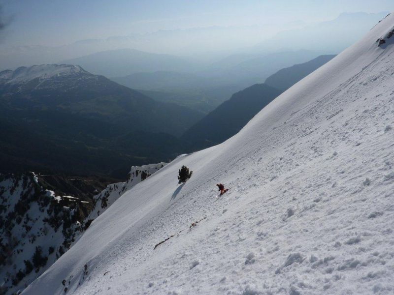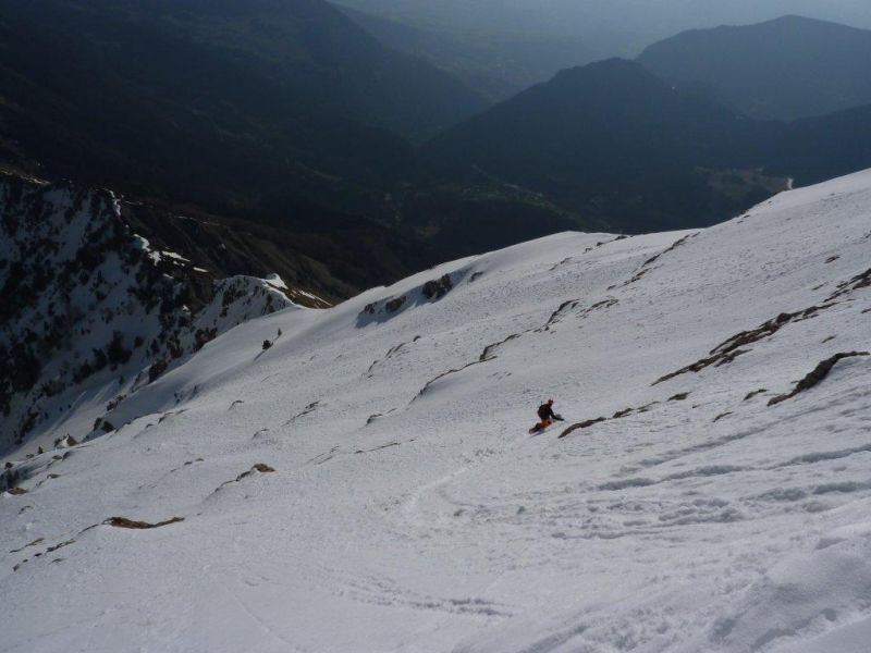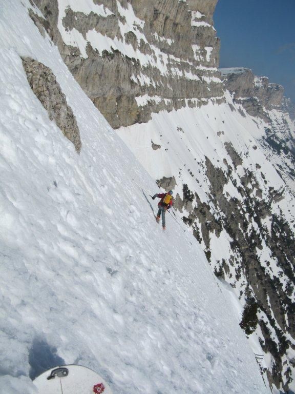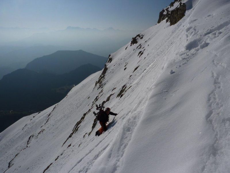 Conditions idéales pour ne pas se stresser avec la nivo dans cette face. Bon remplissage, belle neige transformée. Par contre le couloir d'accès est plein Est et était quant à lui un peu mou à la descente. Sinon ski à la voiture en passant par la piste RD, encore dure et donc bien glissante à la descente.