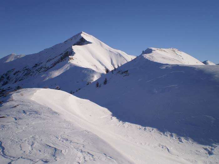 Des plaques de grande taille se sont détachées tout le long du versant nord, ainsi qu'en ouest. Aujourd'hui, en faisant bien attention à éviter les parties raides, tout a paru assez stable. Quelques hésitations en haut de Combeau dans des passages sur plaques dures en surface, mais elles étaient très solides (attention à la glissade). Plus de risques en versant sud, en raison de la raideur des pentes et du tassement en cours. En descendant du sommet à midi, nous faisions partir des coulées de surface et de grosses boules (skier avec des yeux dans le dos !).
