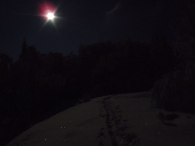Petite sortie de "presque" pleine lune au départ de la maison. La poudreuse en forêt est vraiment excellente. Je n'ai pas osé sortir au sommet de la Petite Cuche et donc je n'ai pas pu descendre par le versant NE qui présente une forêt bien skiable au clair de lune (forêt de feuillu). L'APN n'a pas supporté le froid! 1 photo de réglage seulement!