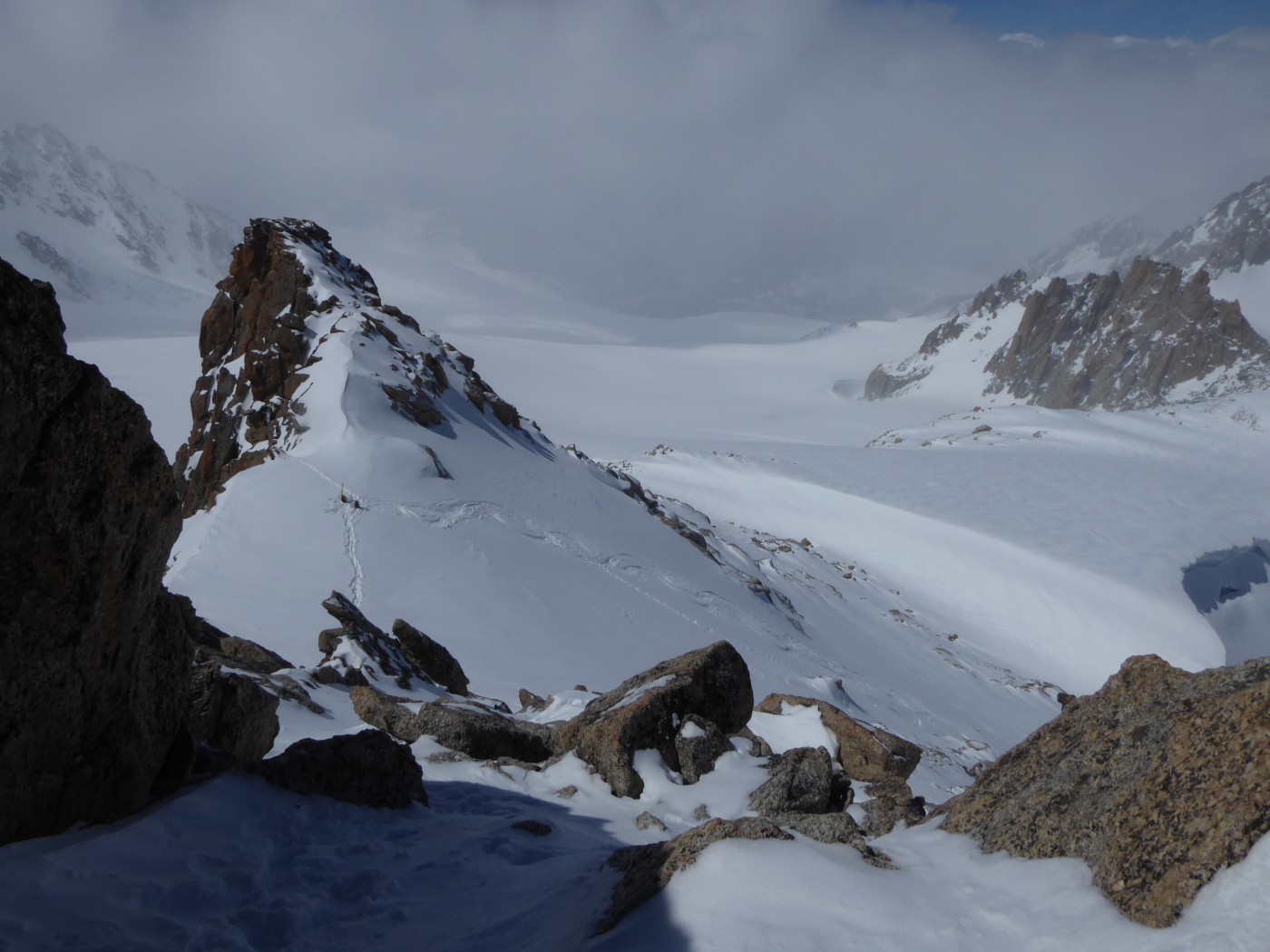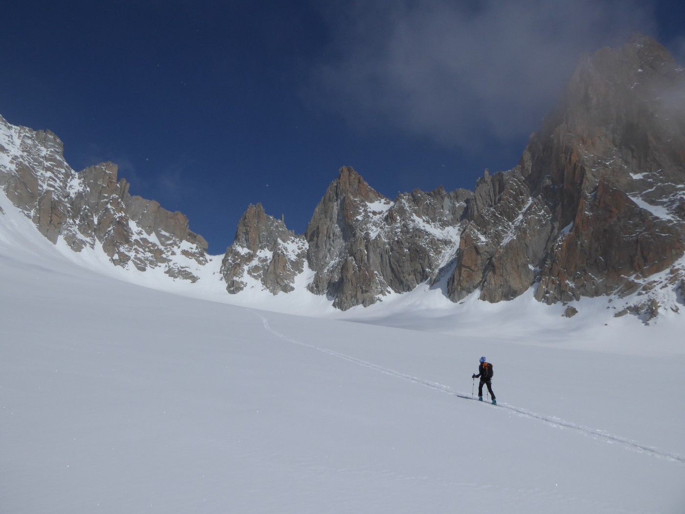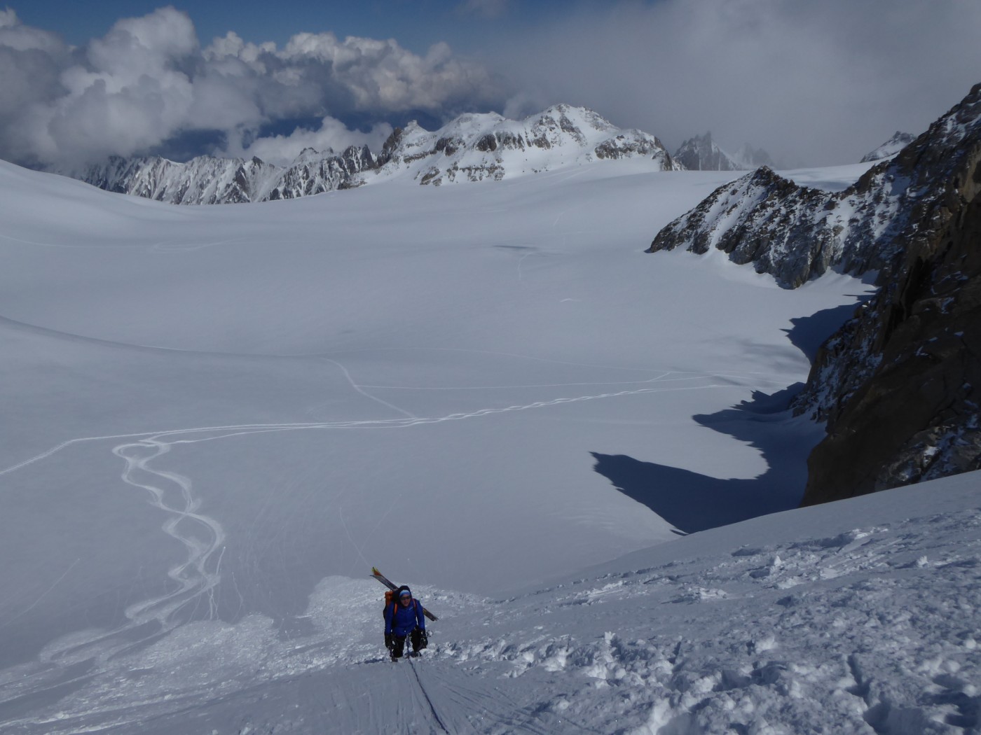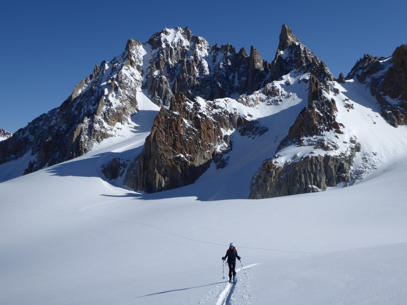 J-1 : montée au refuge Albert 1er par le sentier de la moraine. J-2 : Montée à la fenêtre du Tour, descente sur le glacier de Saleina. Remontée à la fenêtre de Saleina puis au col Blanc et à la Petite Fourche. Descente sur le plateau du Trient puis sur la cabane du Trient.