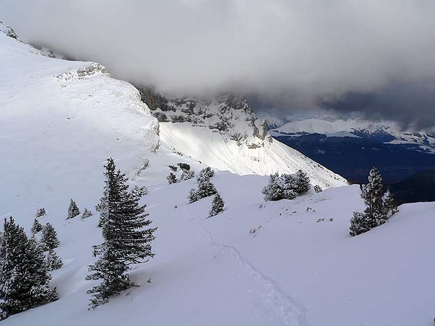 Conditions de ski excellentes excepté le verglas à l'approche des crêtes. A ce sujet, pour les amateurs, l'entrée du goulot des Chaudières est en pur verglas. S'il pouvait faire froid, on aurait une excellente sous-couche permettant de skier, comme aujourd'hui, n'importe où dans la forêt dès 1200 m, sans aucun souci et sans surprises