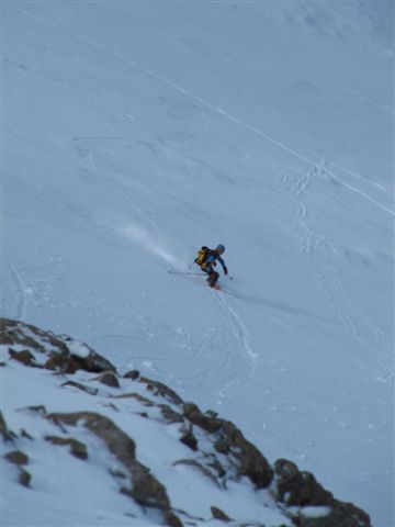 Une très belle virée à la matinée. La petite couche de poudre tombée samedi soir ? adouci la surface et a rendu le ski bien agréable. Comme le dit si bien Jo sur son blog, on attend une sortie pourrie pour ranger le matériel...ça ne sera pas celle là !