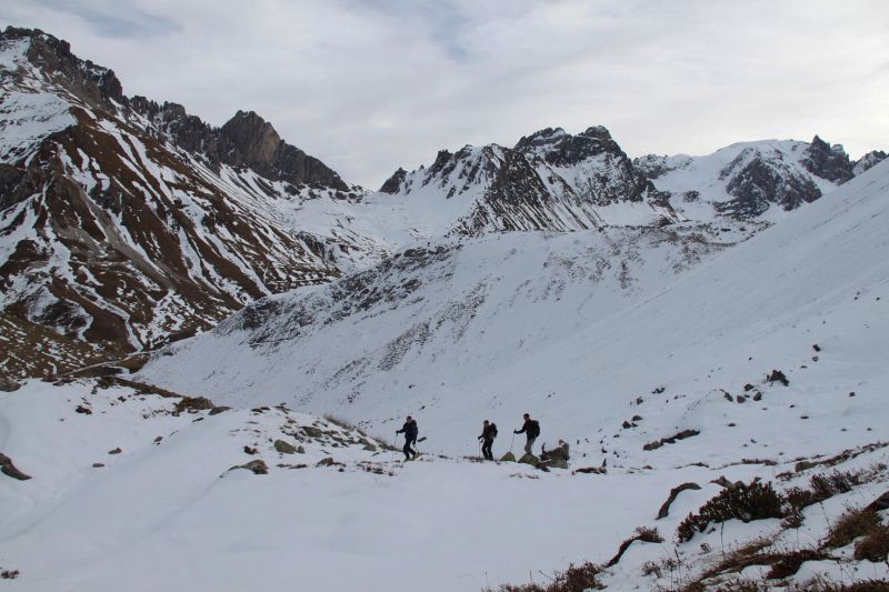 Après trois semaines d'austérité (week-end s'entend...), dédiées à la constitution d'une sous-couche, voilà qui fait du bien. La distance -relative- de cette balade lui confère un petit air de voyage, à cette époque où la lumière devient rasante. La skiabilité pâtit un peu de la manip au colomban Noir mais on s'en contentera pour un 6 novembre.