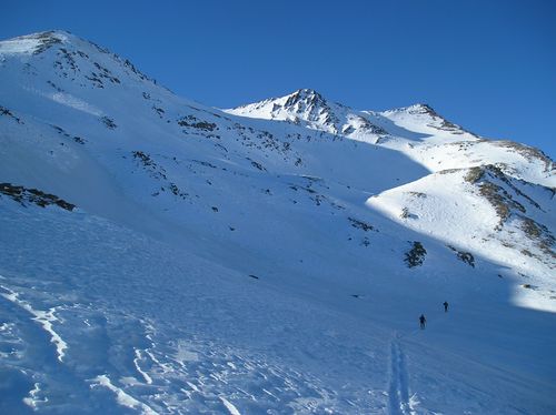 Départ de Sestrières et montée en direction du col du Galibier par la route. Au "mémorial" montée au sommet nommé "Kairn" puis descente en nord-est versant Maurienne. Remontée au petit col au nord du Pic Blanc puis montée au sommet à pied par l'arête. Descente par la voie normale. 1500m de D+