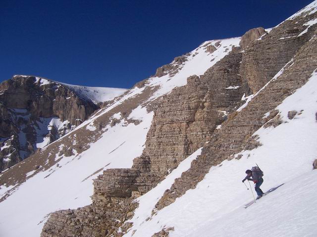 On n'a pas fait l'A/R au sommet. Descente directe depuis le point 2511. Peu de neige au dessus de 2000m, face sud du pic de Mai sèche également