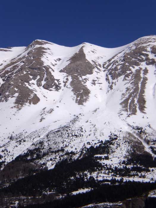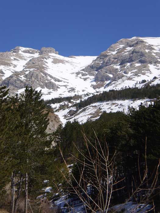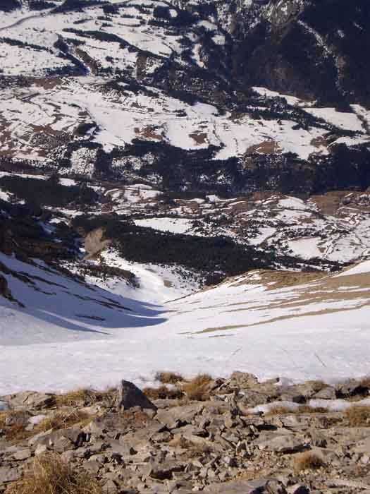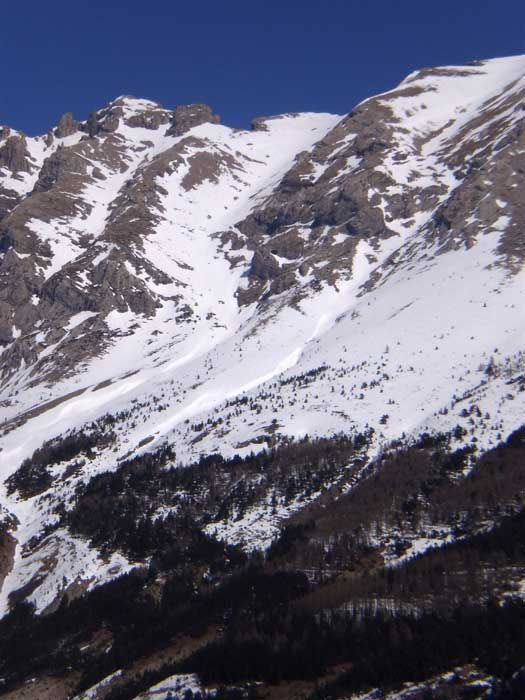 J'ai porté les skis tout le long (j'aurais pu m'épargner de mettre les peaux); d'abord un sentier très pratique dans une forêt en rive gauche du ravin qui mène tranquillement à la combe vers 1550. Après, ça tourne bien, mais c'est tout droit! A la descente, j'ai cherché un passage un peu plus loin en rive gauche, mais j'ai dû déchausser vers 1350. J'ai retrouvé la route à 50 m plus au sud de l'endroit de départ.